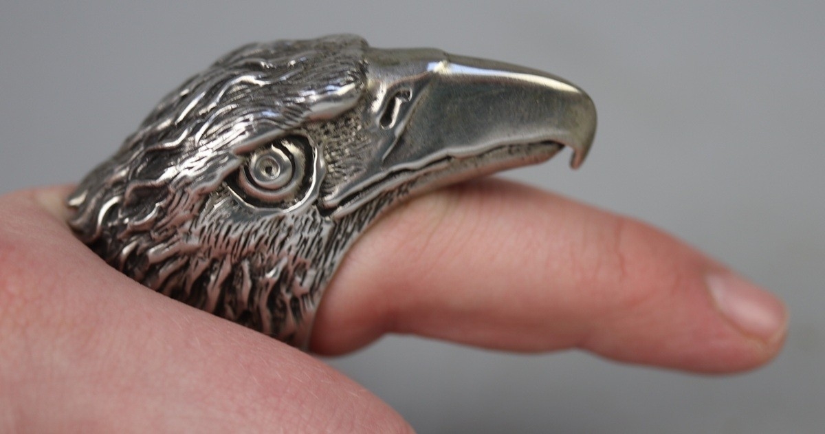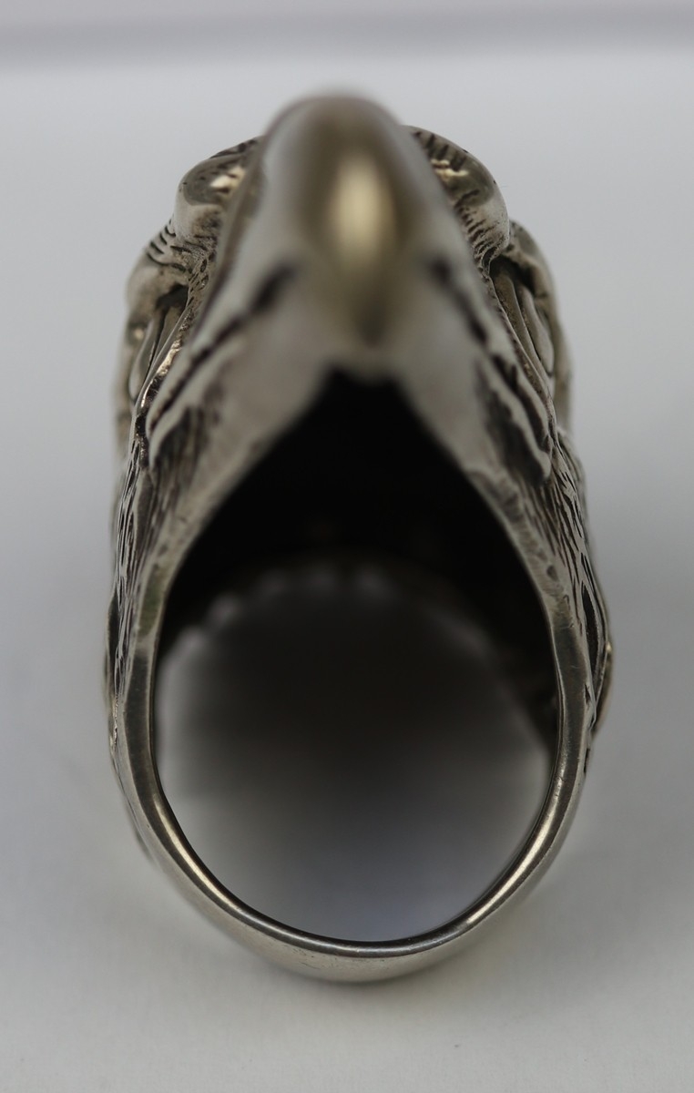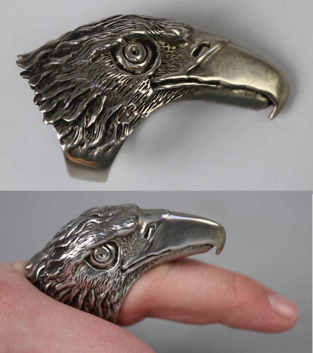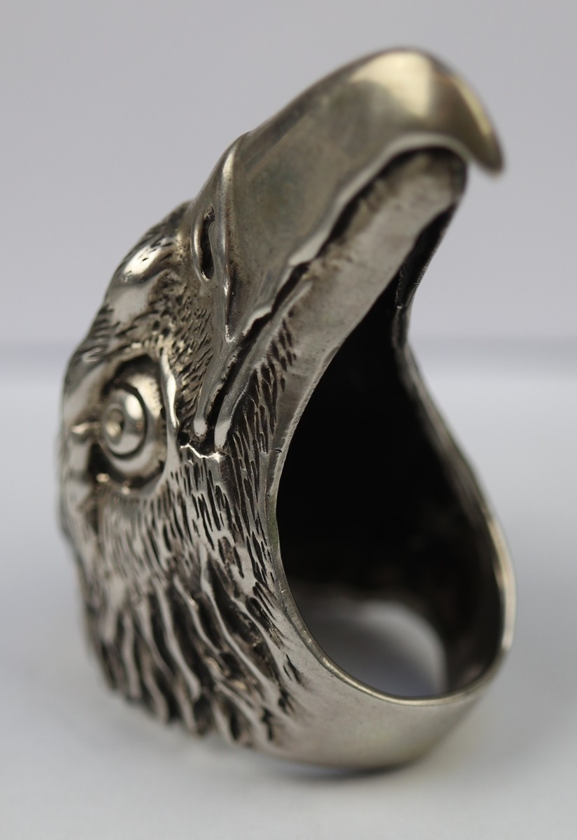 Large silver ring in the form of an eagles head - Approx 40.6g