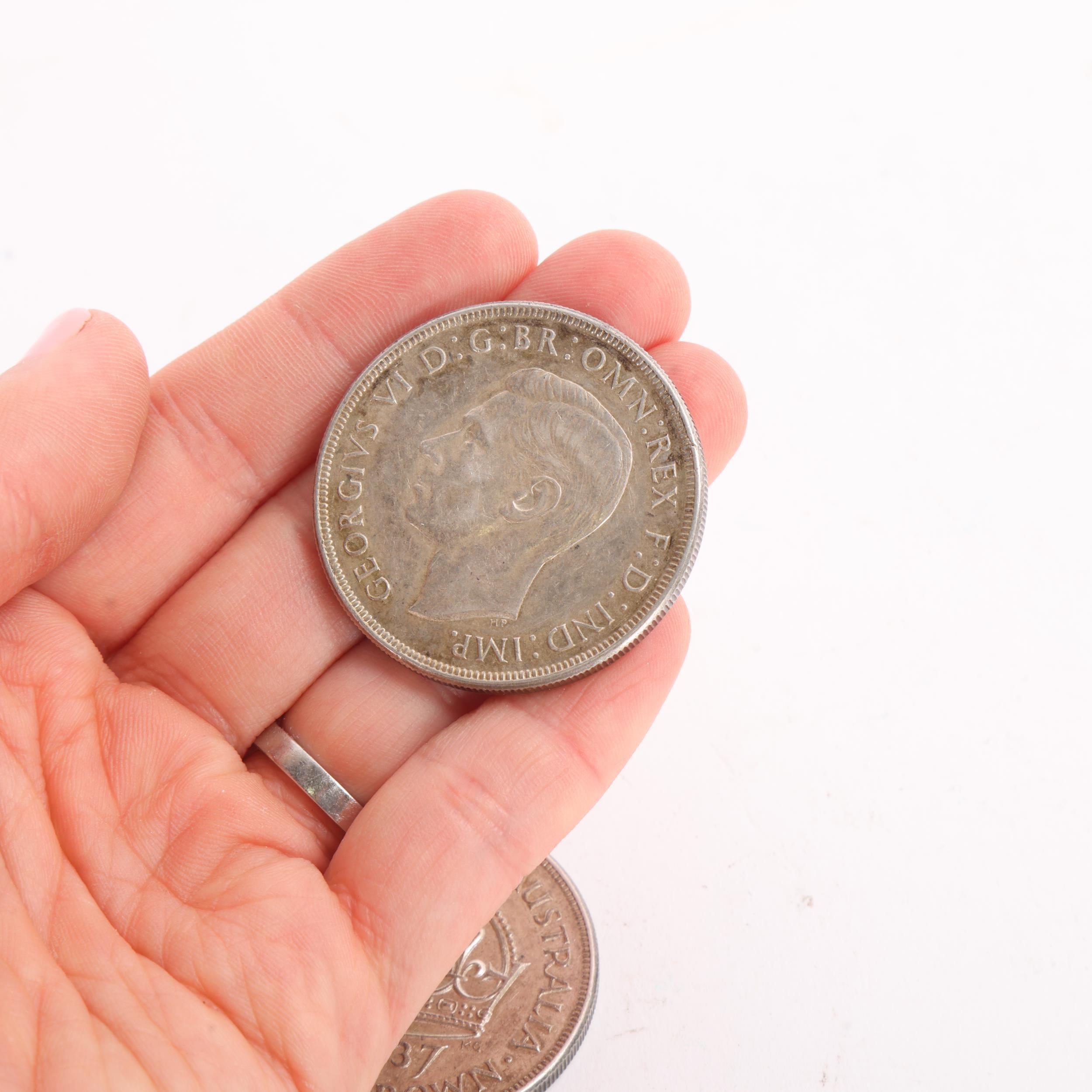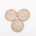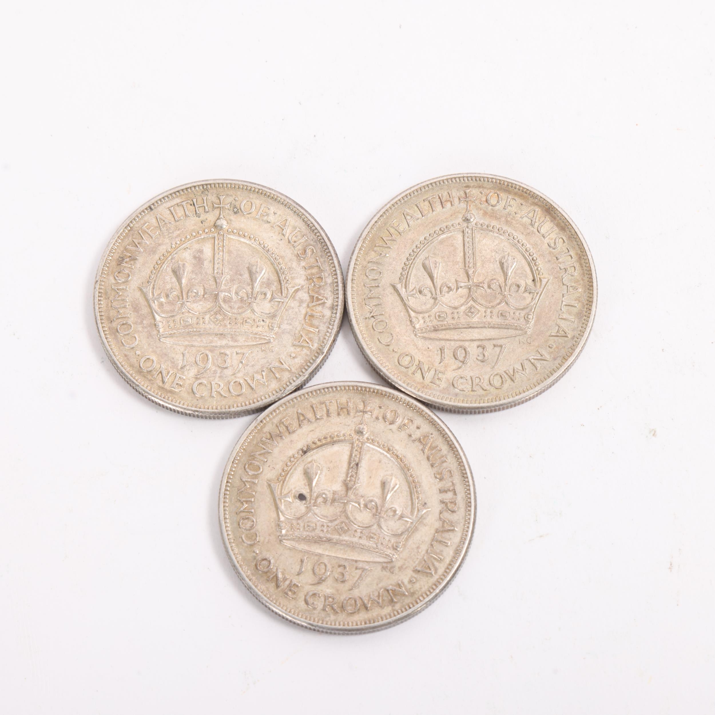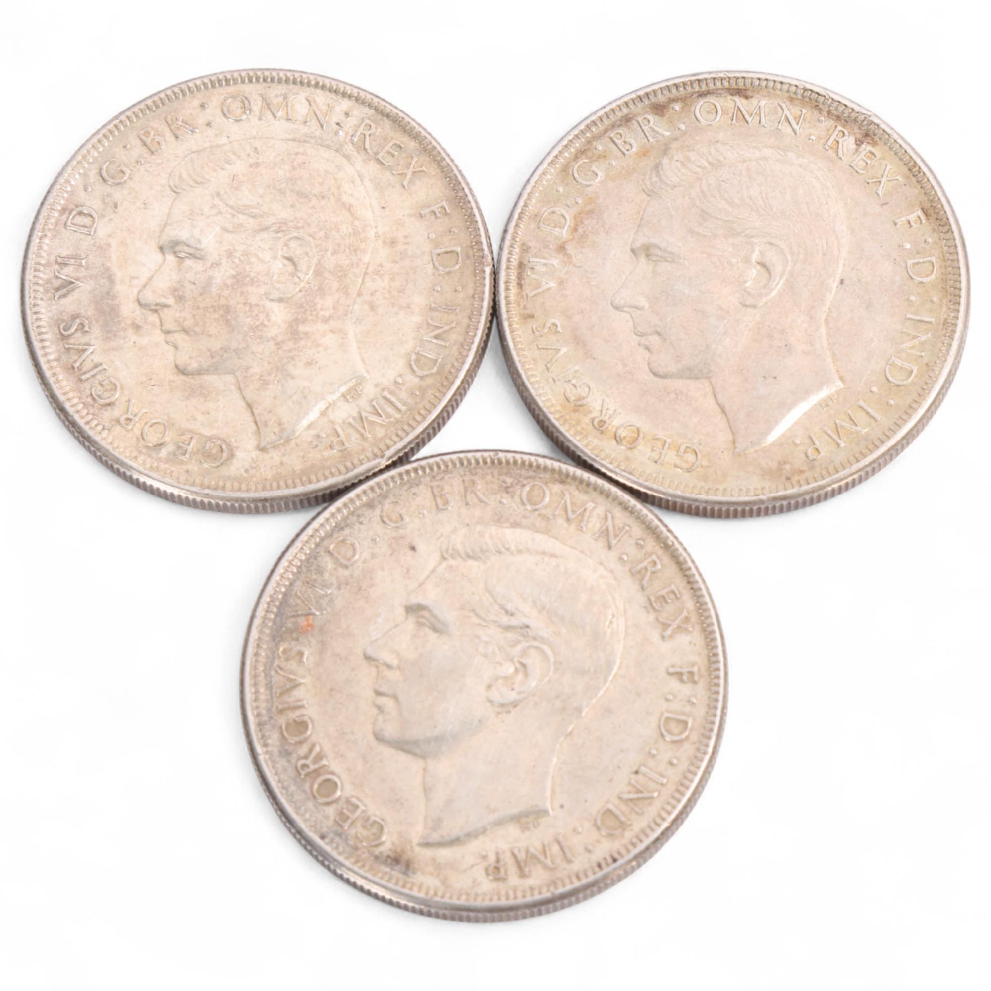 Three George VI 1937 One Crown coins, overall weight 85g, diameter 38mm