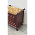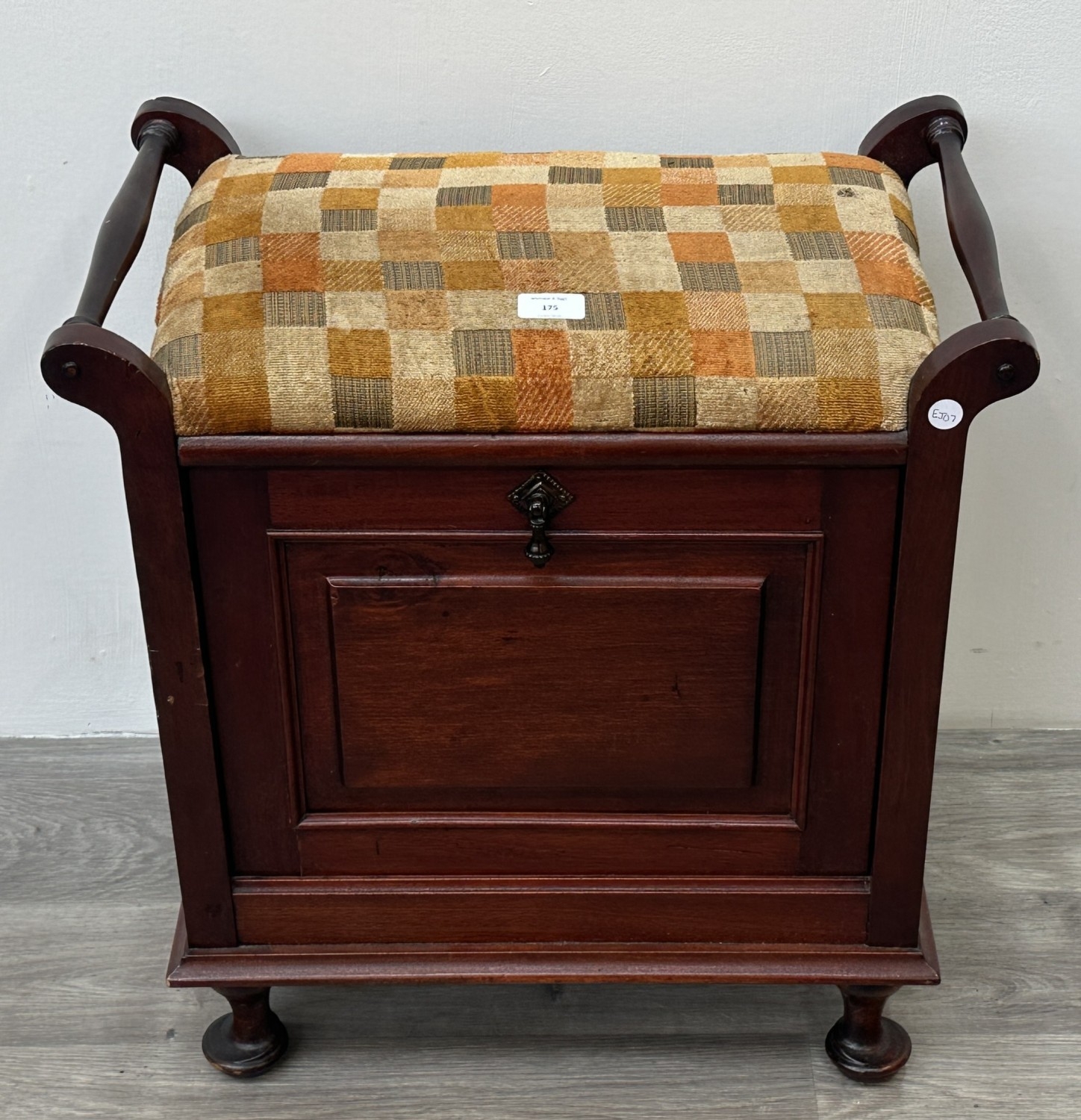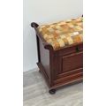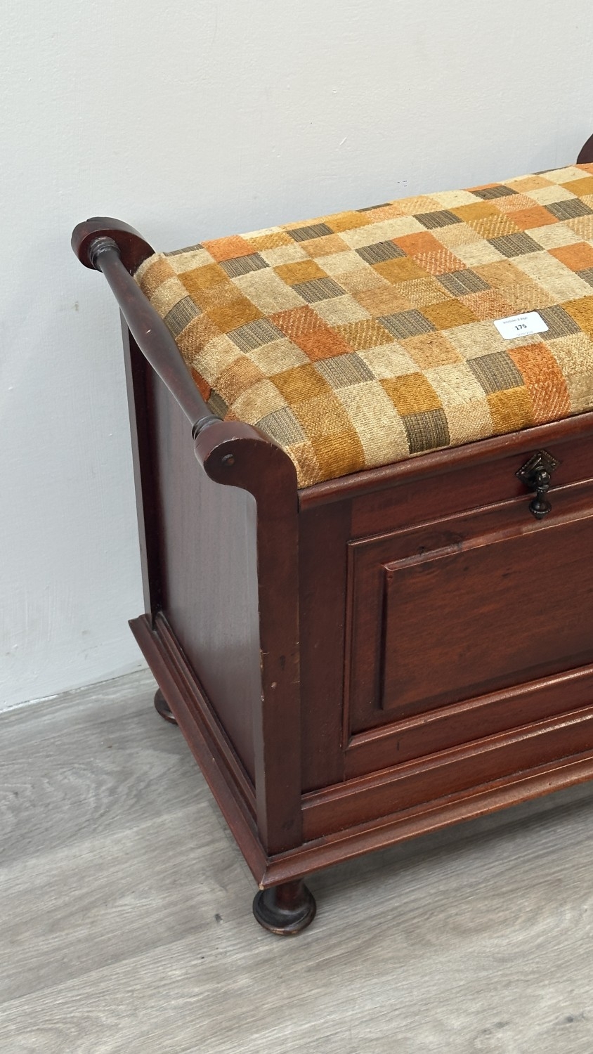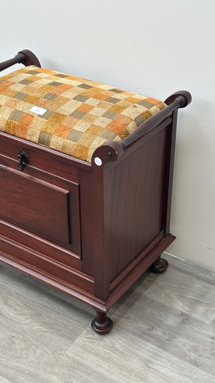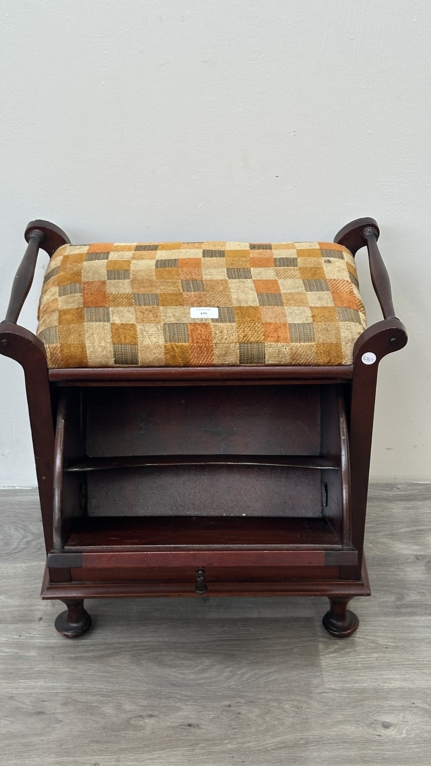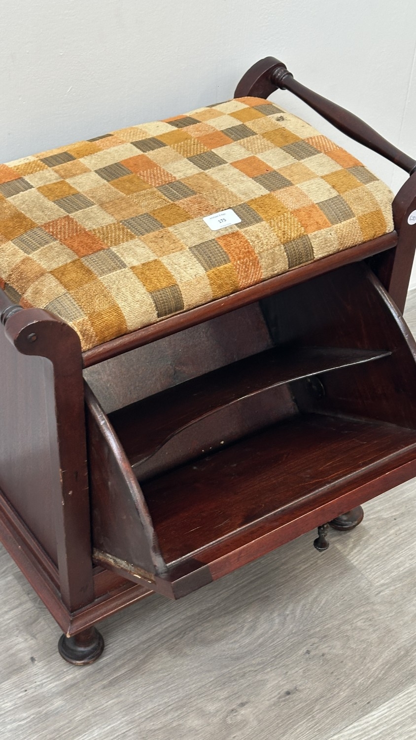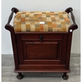 An Edwardian style stained beech and fabric upholstered piano stool - approx. 58cm high x 55cm wide x 33cm deep