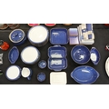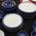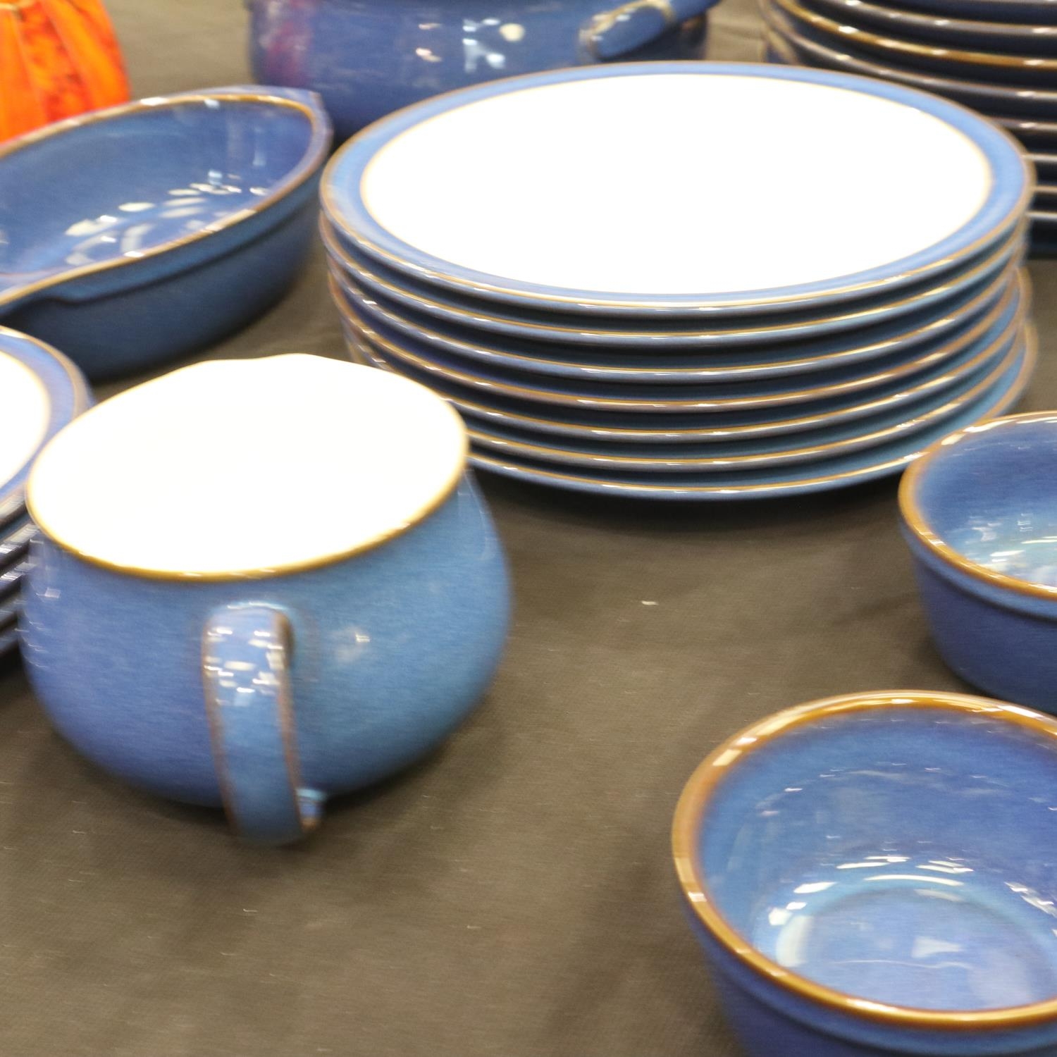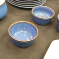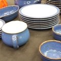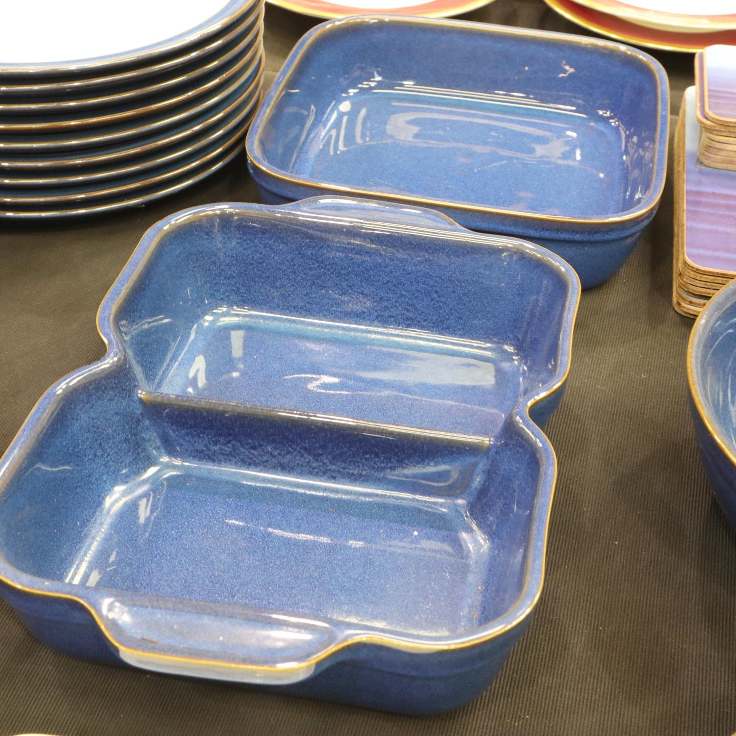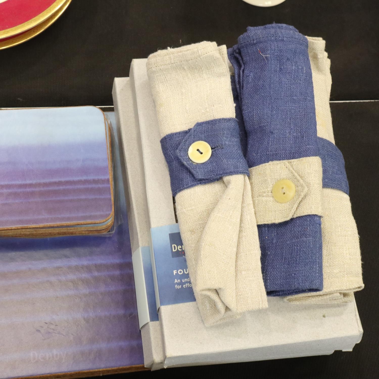 Denby dinner service of thirty-two pieces in the Imperial Blue colourway with matching Denby placemats, coasters and napkins. Not available for in-house P&P