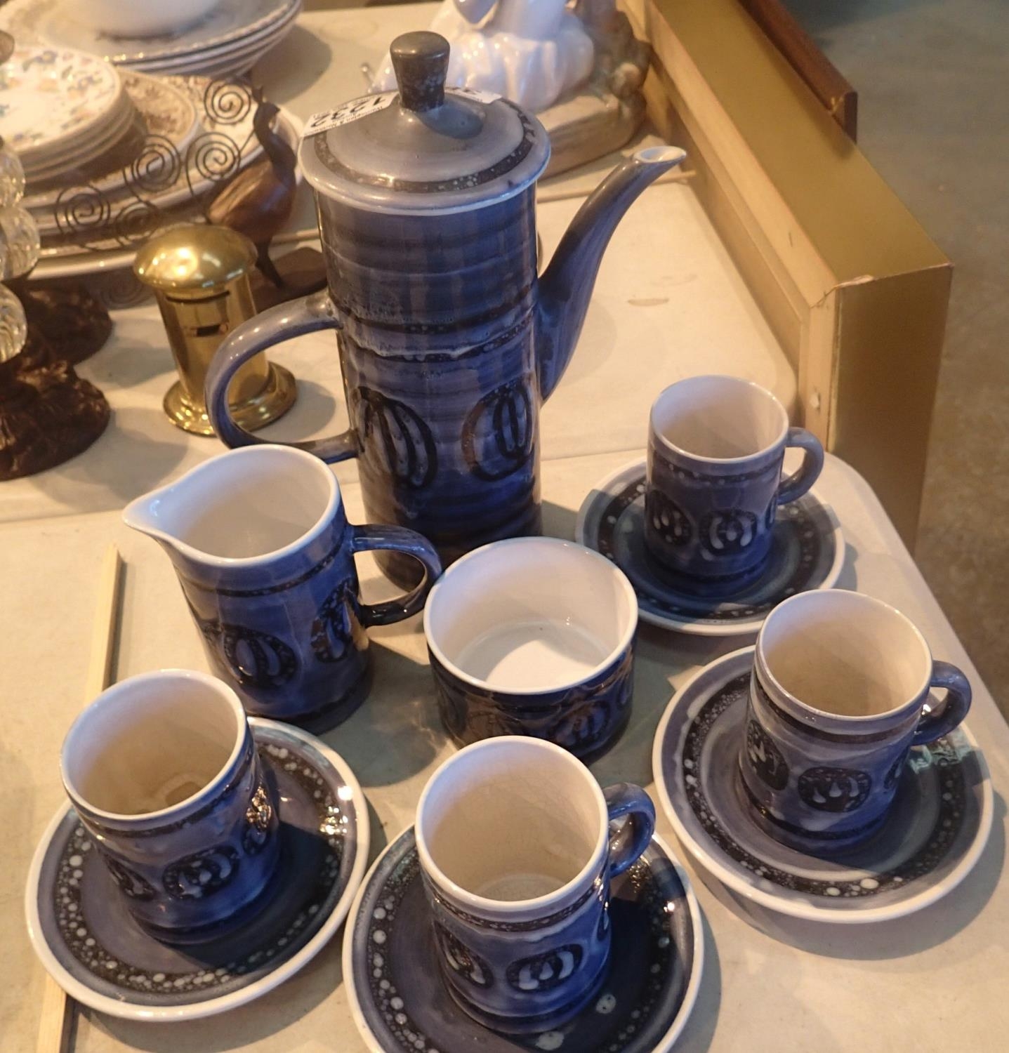 Cinque Ports Pottery Rye, a mid 20th century coffee service having four cups and saucers, cream jug, sugar bowl and coffee pot. Some crazing, otherwise no chips, cracks or visible restoration. Not available for in-house P&P, contact Paul O'Hea at Mailboxes on 01925 659133