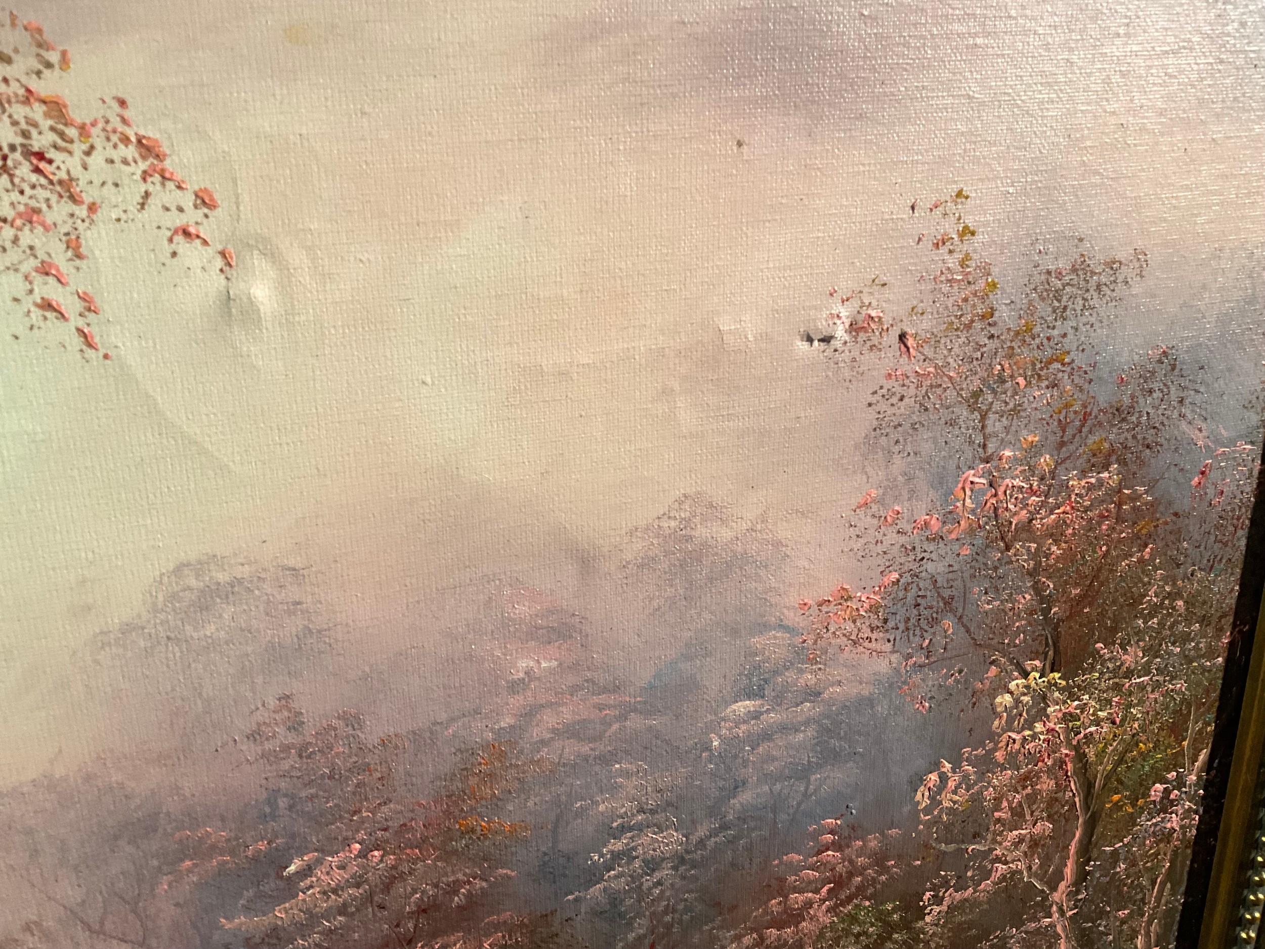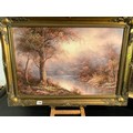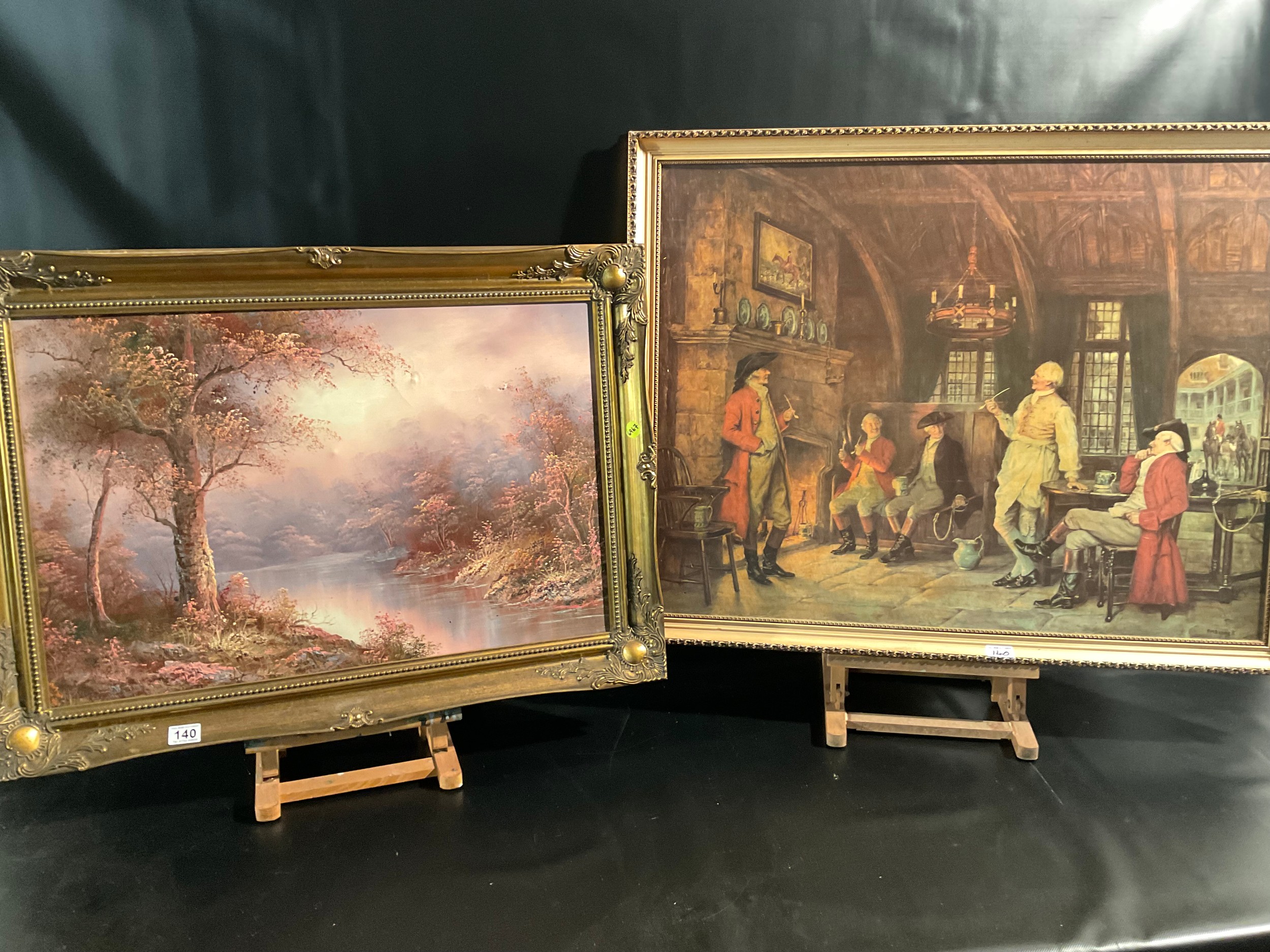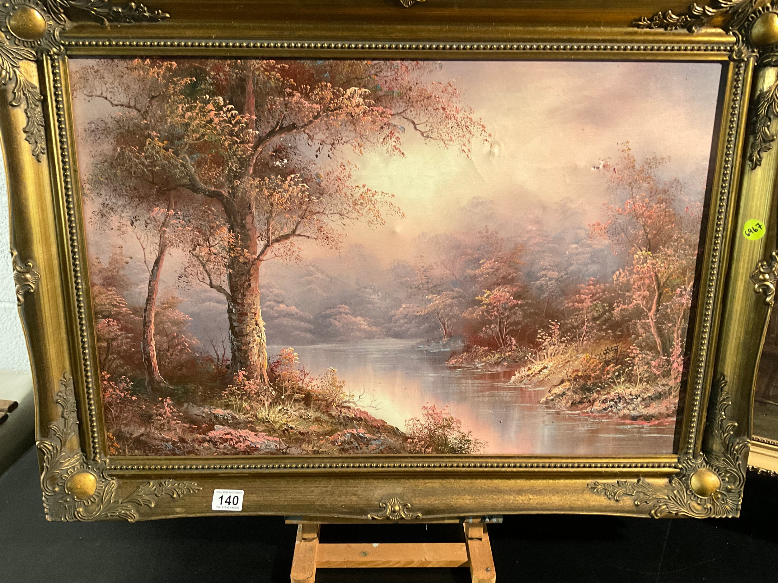 2 LARGE MODERN GILT FRAMED PICTURES - 1 OILS ON CANVAS AND 1 PRINT