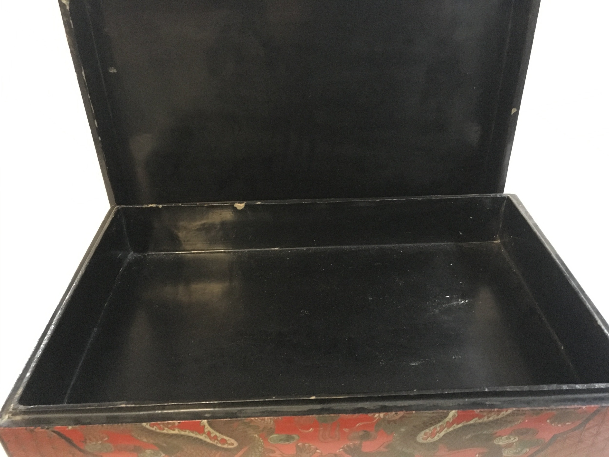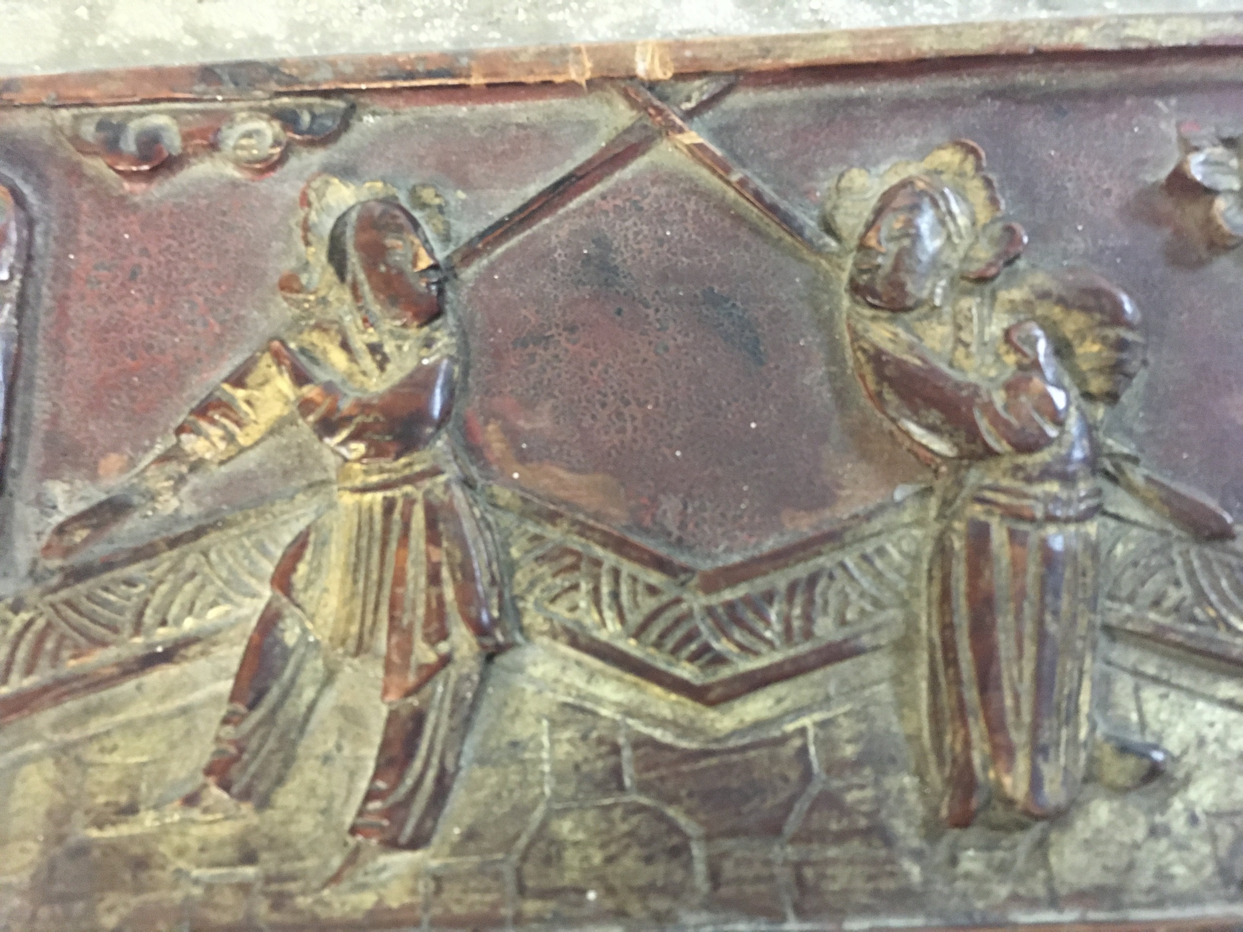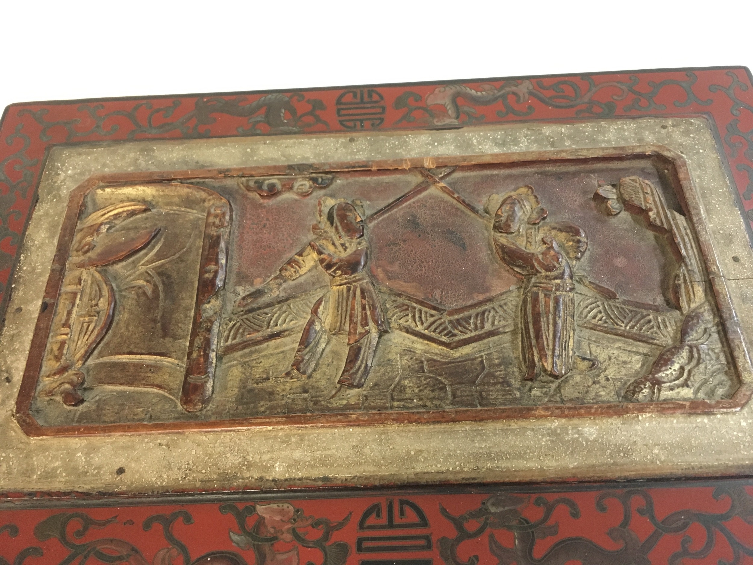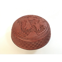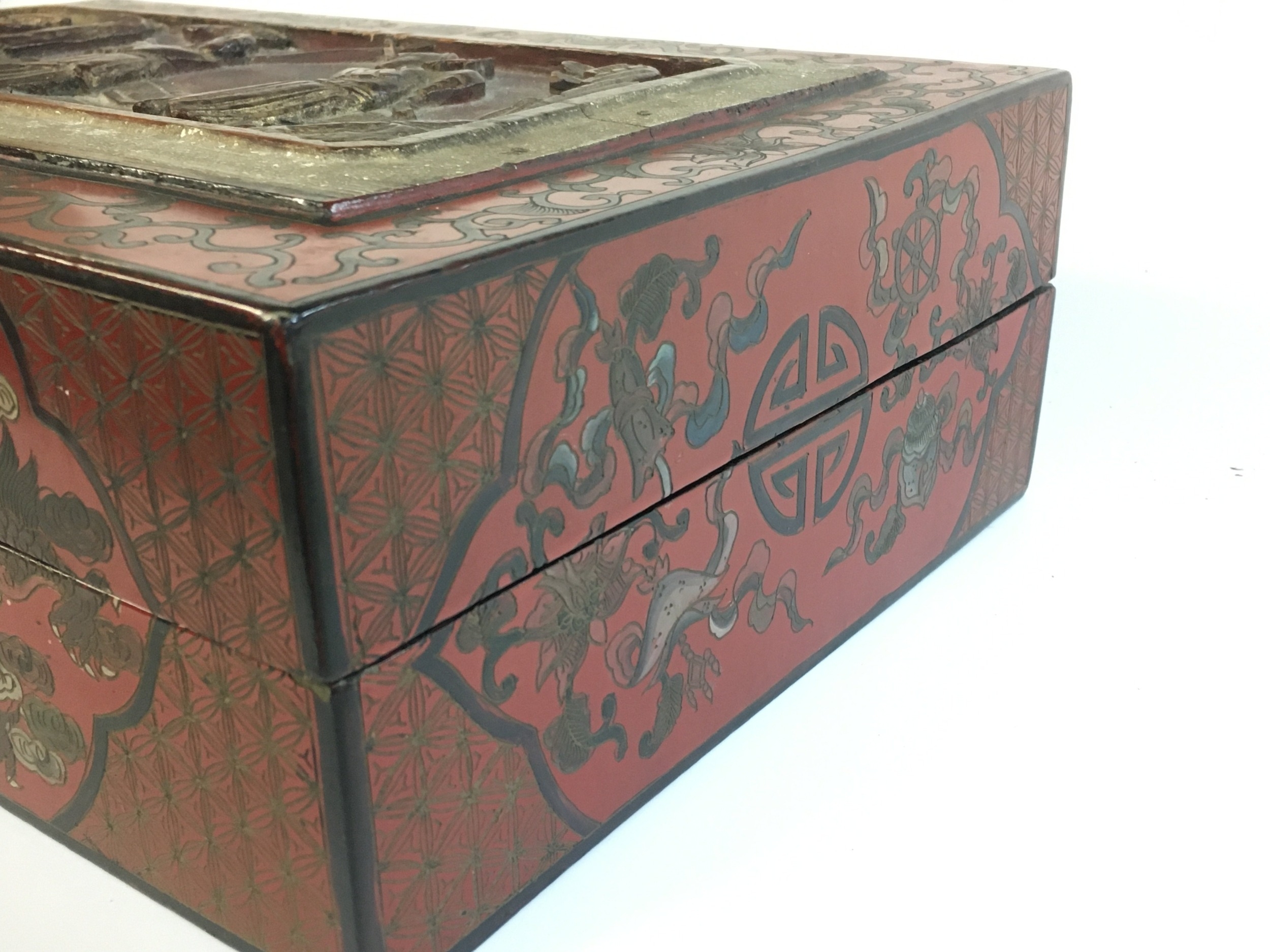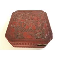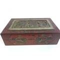 A large antique Chinese red cinnabar box , 35cm wide 10cm tall