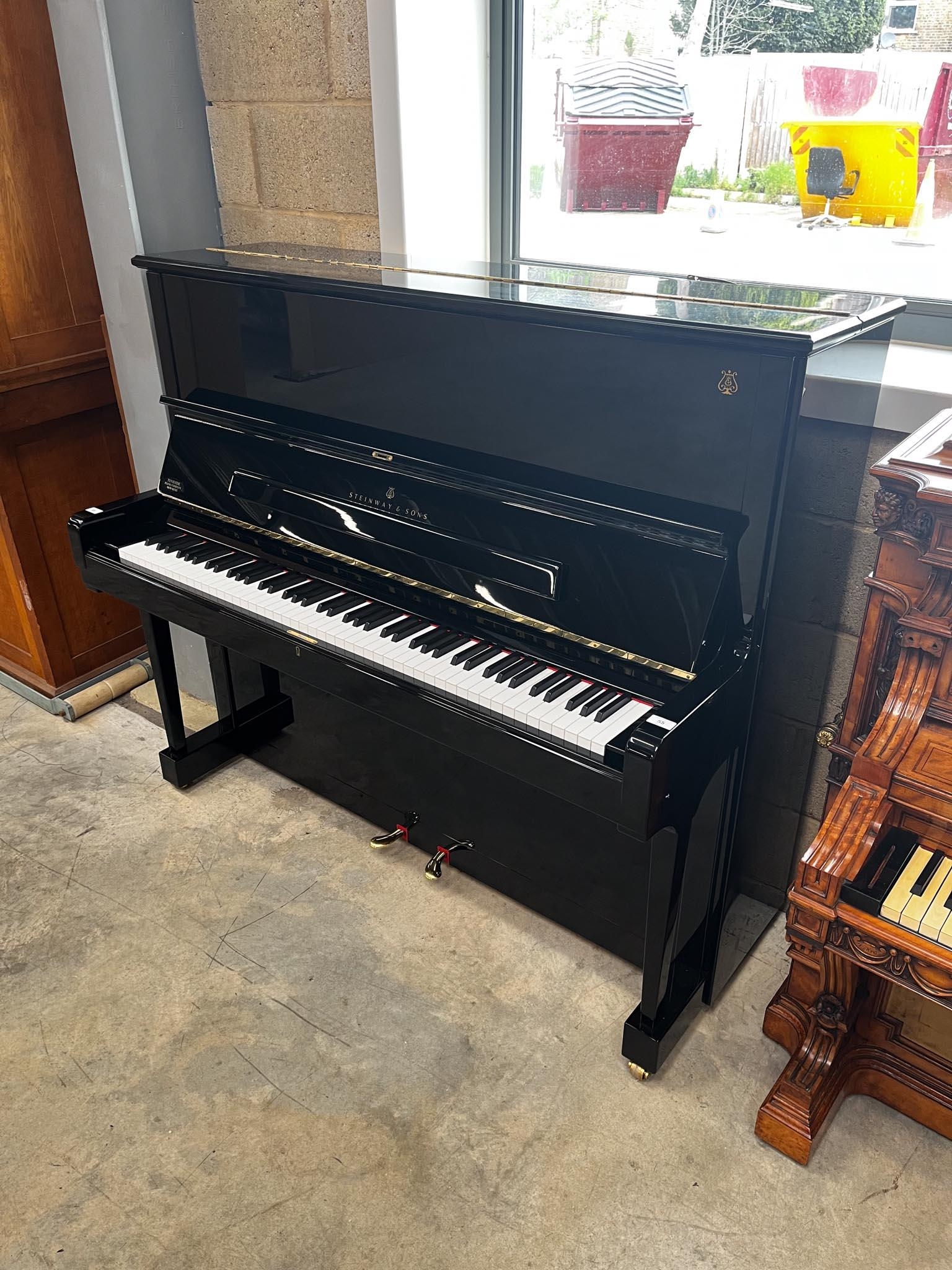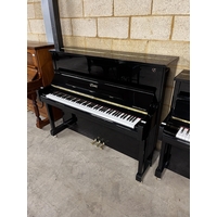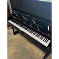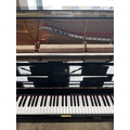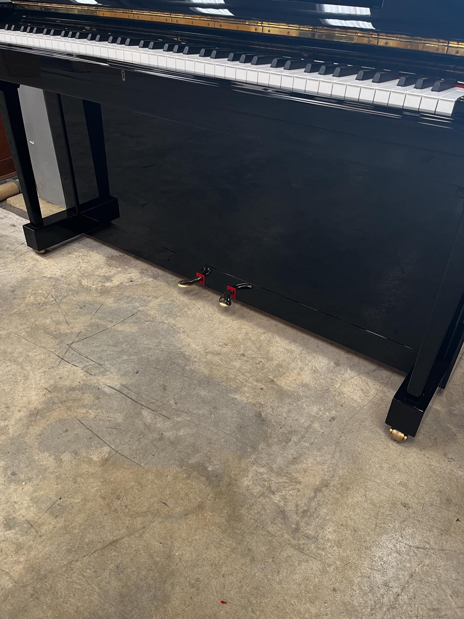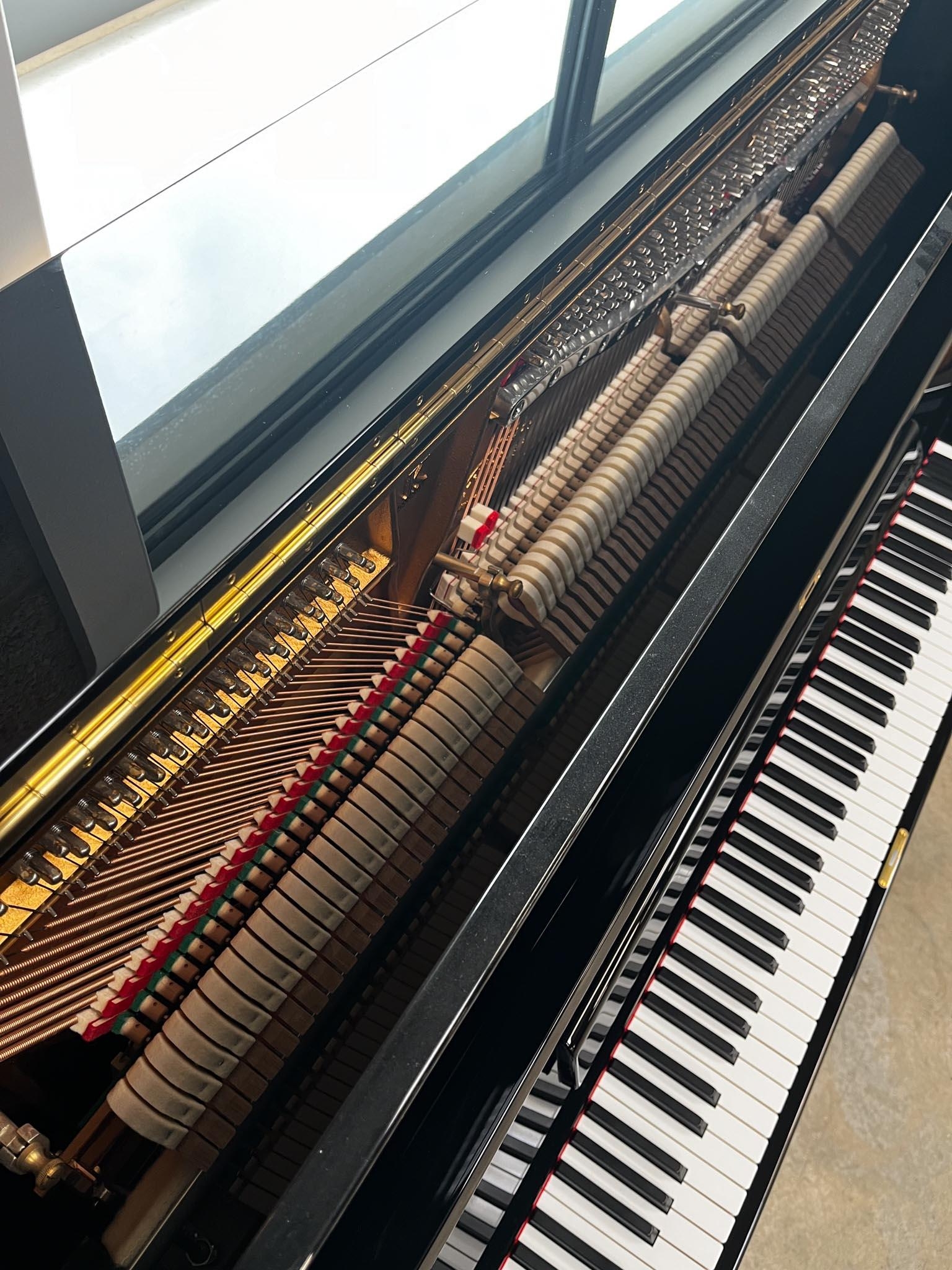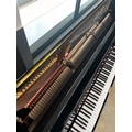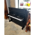 A Model K upright piano in a bright ebonised case.