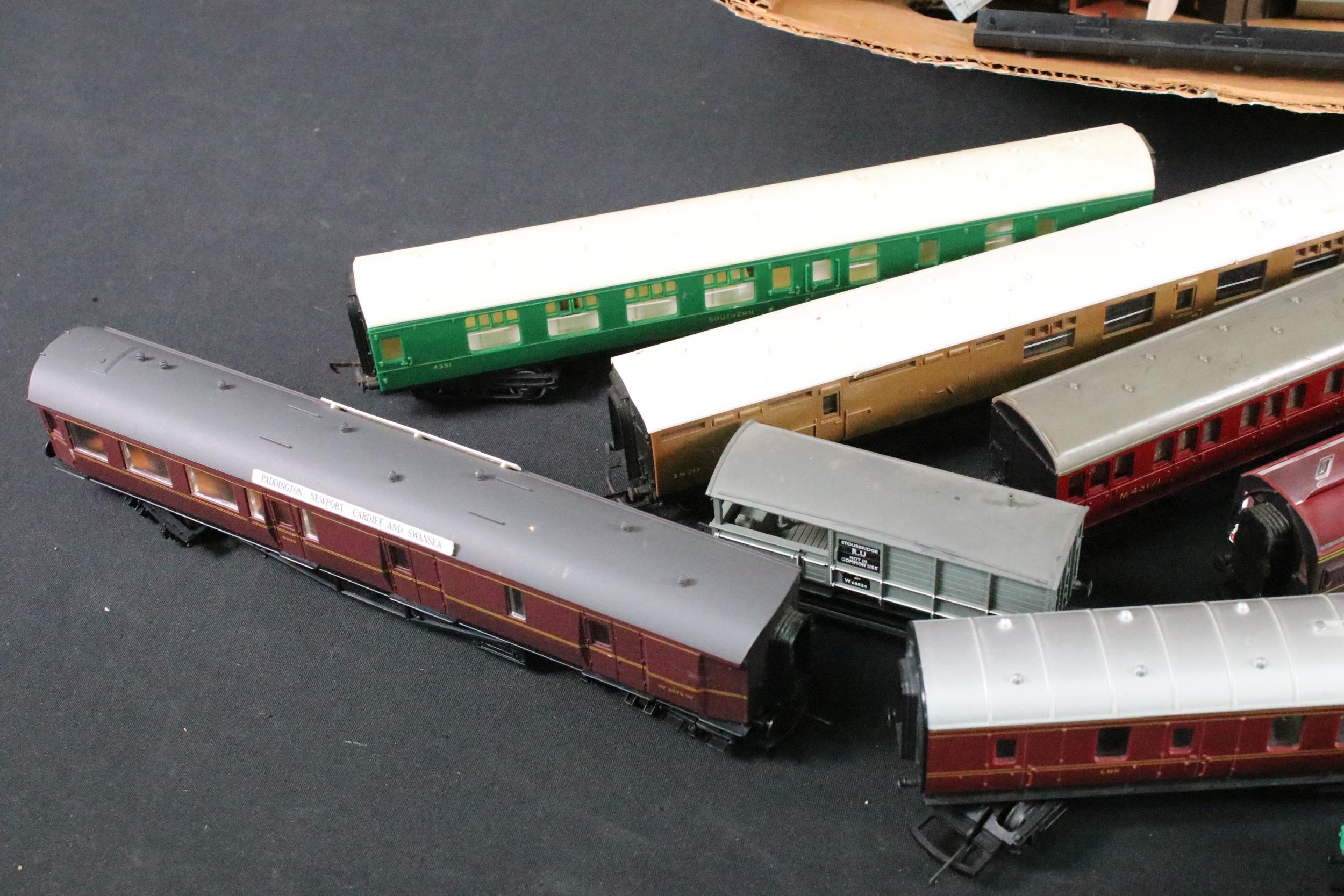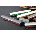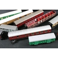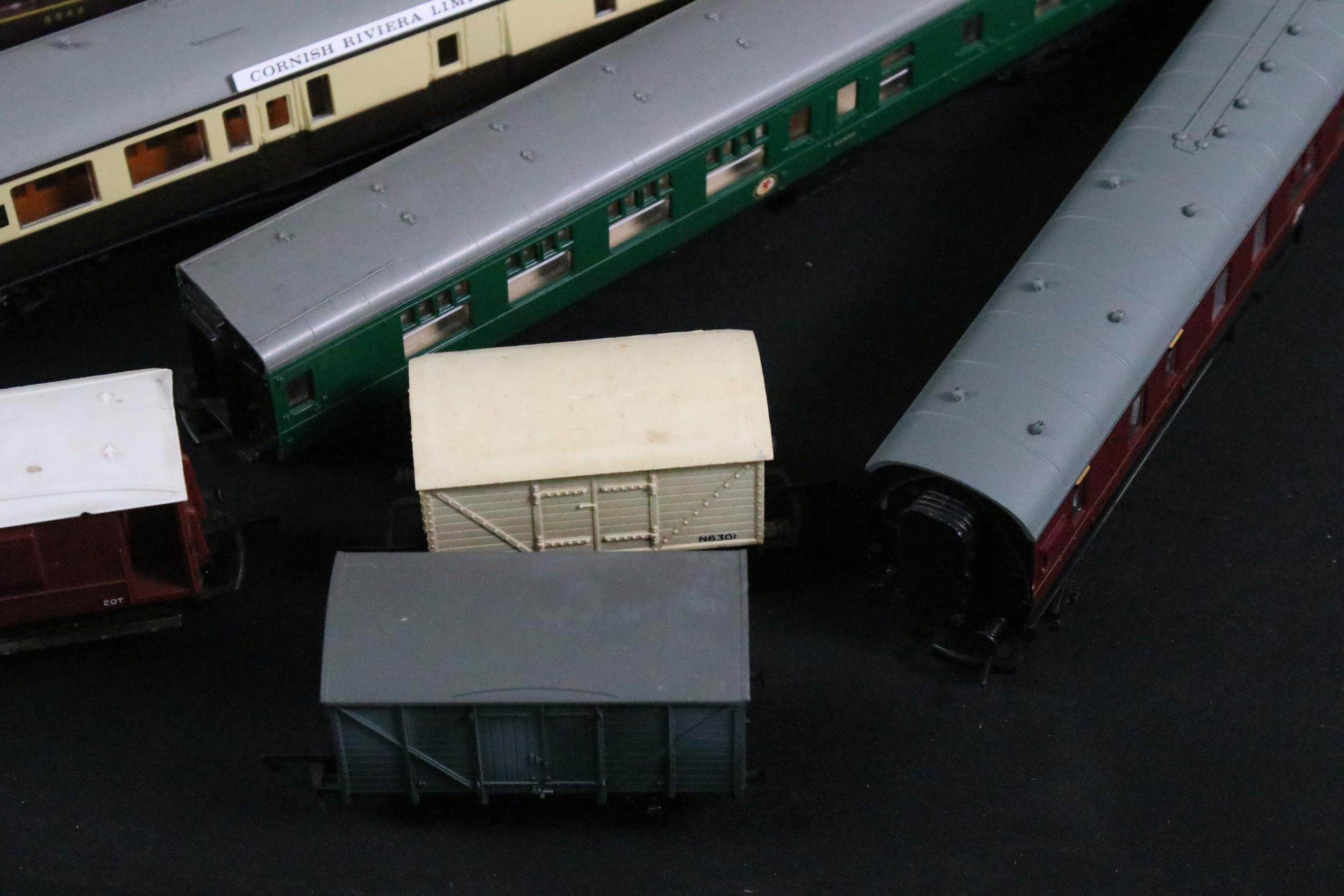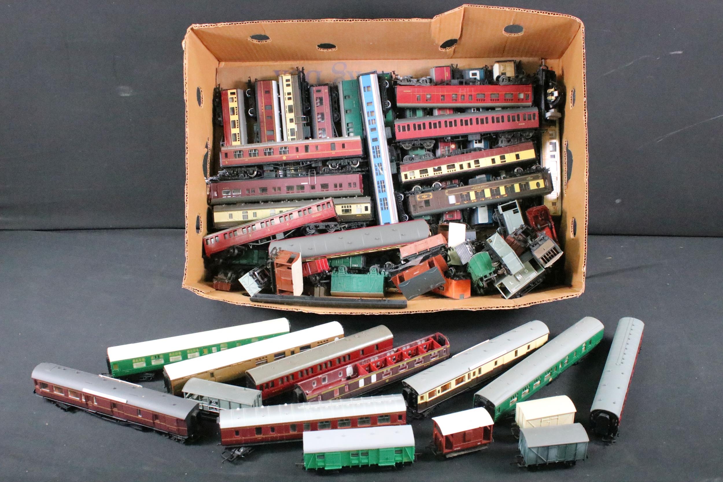 64 OO gauge items of rolling stock featuring Hornby, Airfix, Triang etc, featuring various coaches and vans