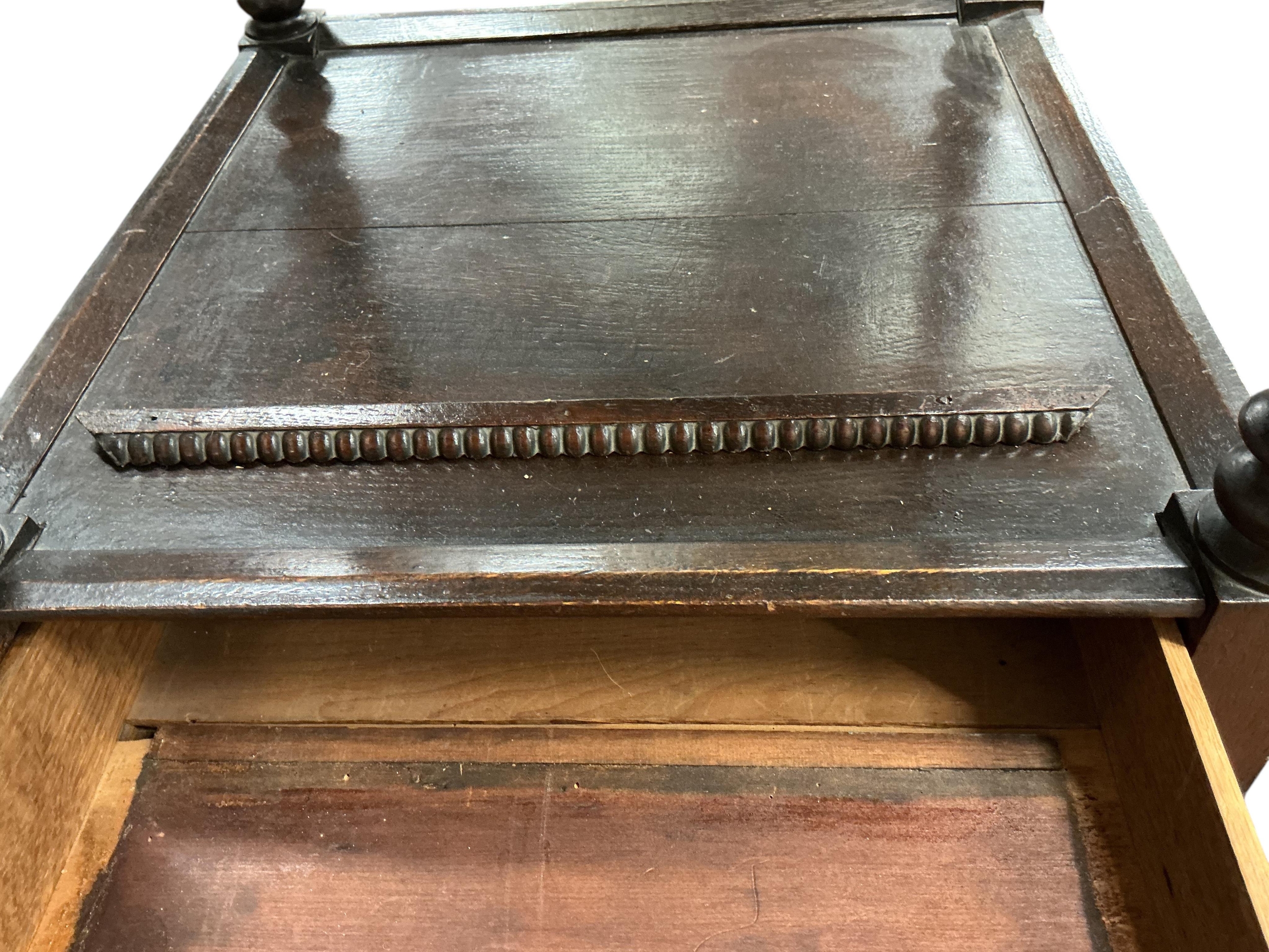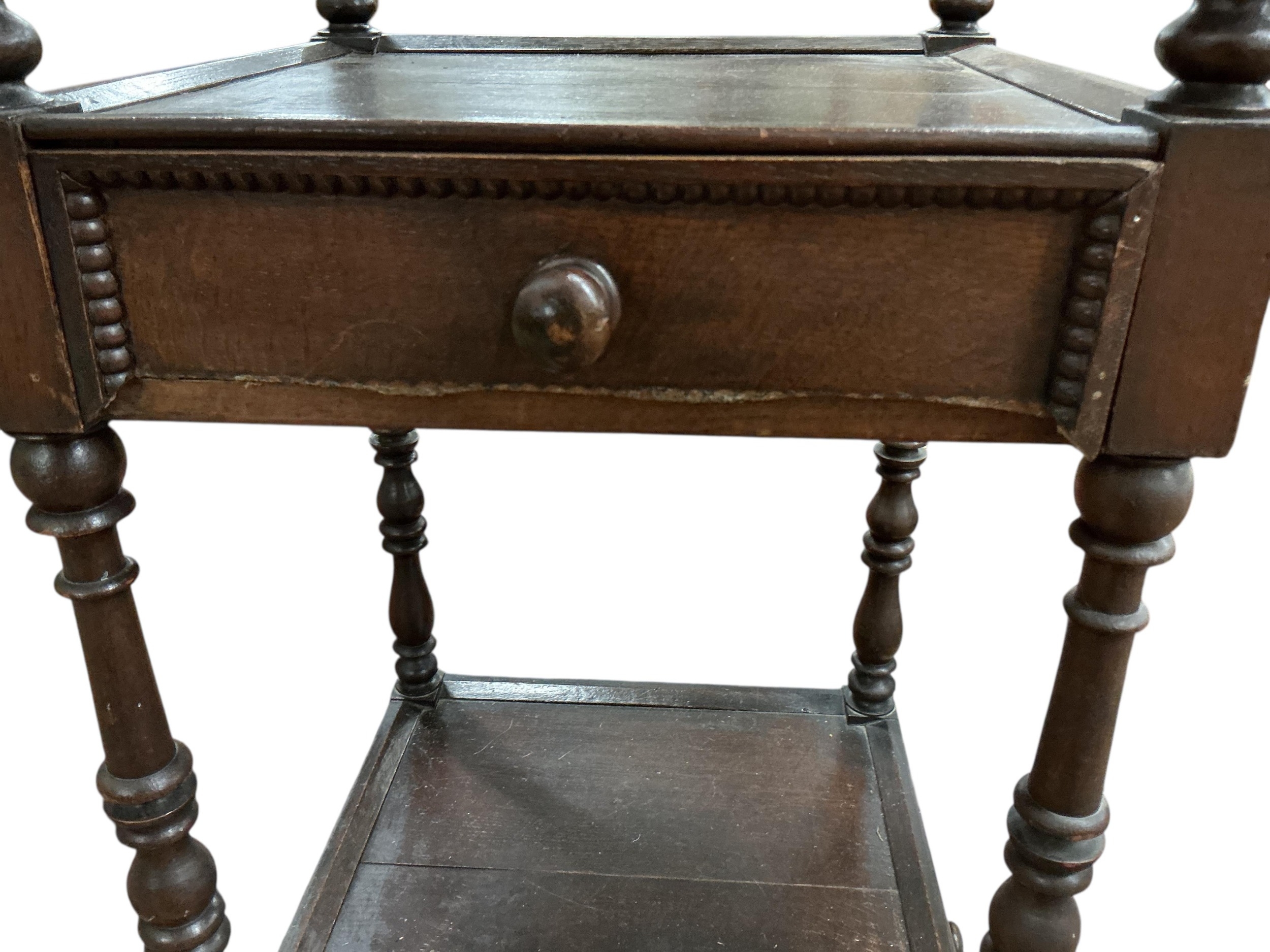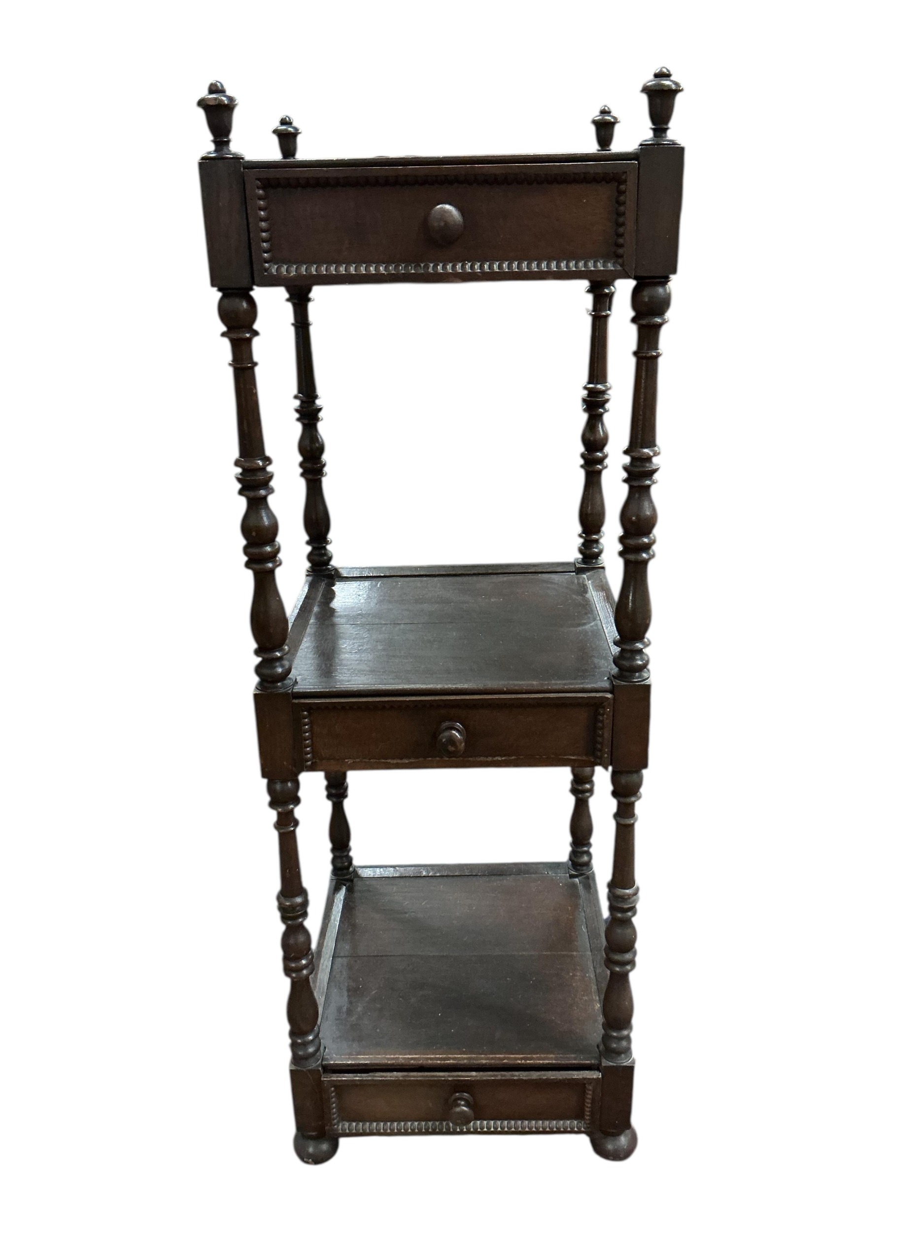 A Regency style oak three tier whatnot, width 46cm, height 136cm