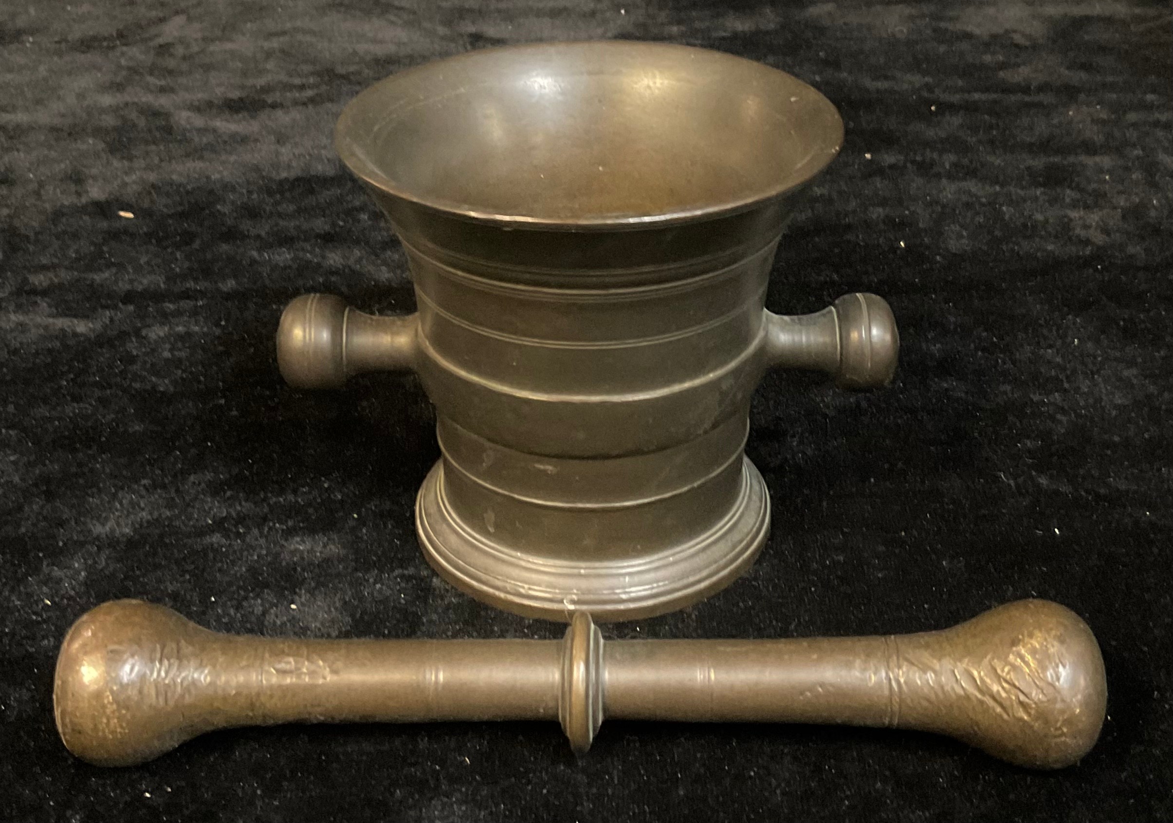 A bronze pestle and mortar