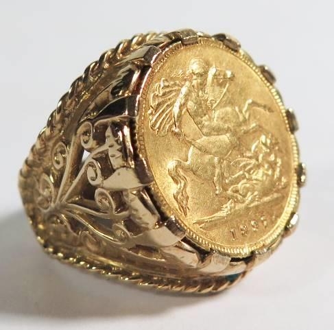 An 1899 Gold Half Sovereign in 9ct ring mount, 12.6g, size L.5