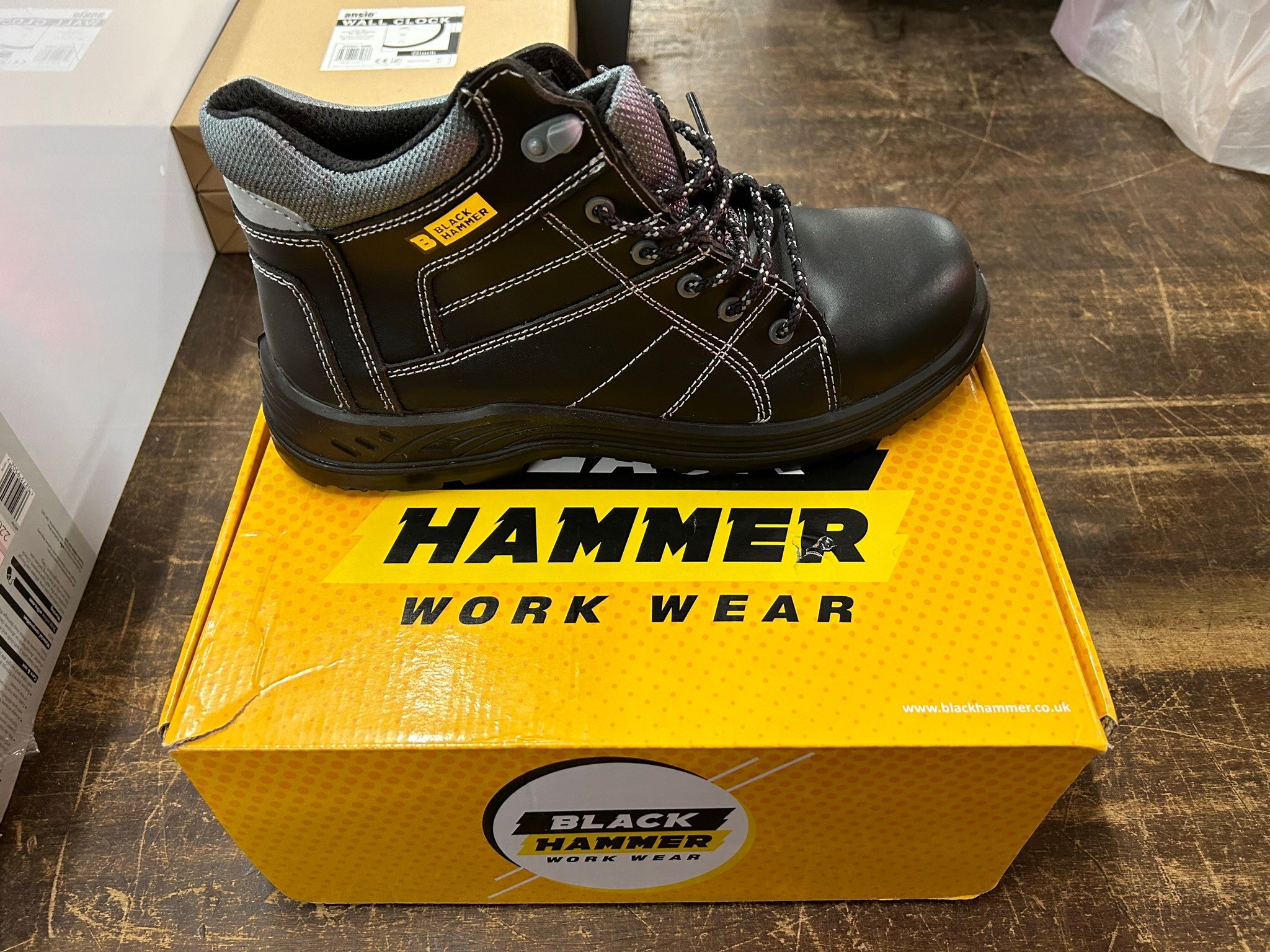 Pair of unused black hammer safety boots with kevlar toe - size 46 (UK 12)