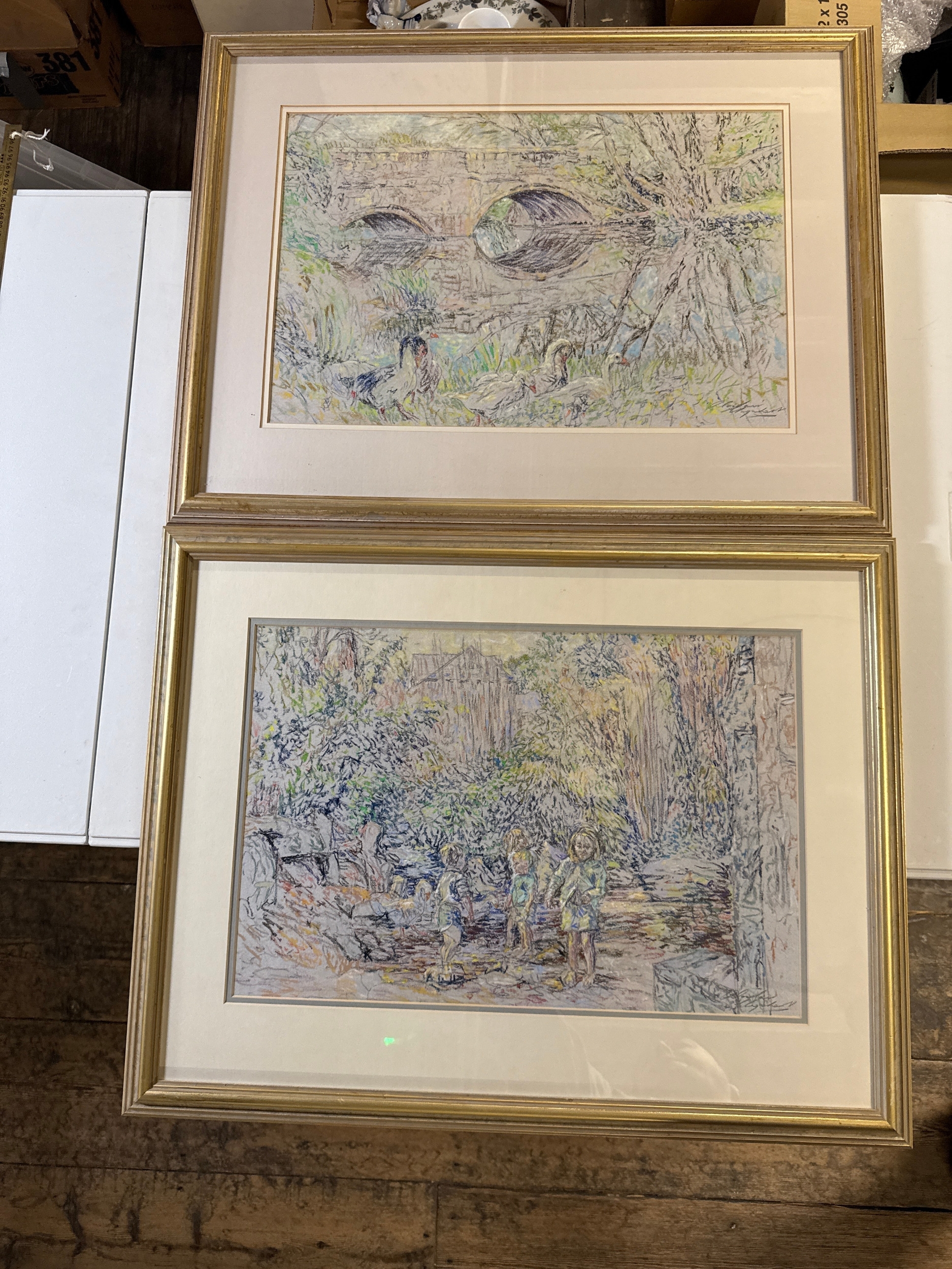 A Pair of Pastels by Alasdair Urquhart, 'The Riverbank, Rowe, Devon' and 'Mill Stream'
