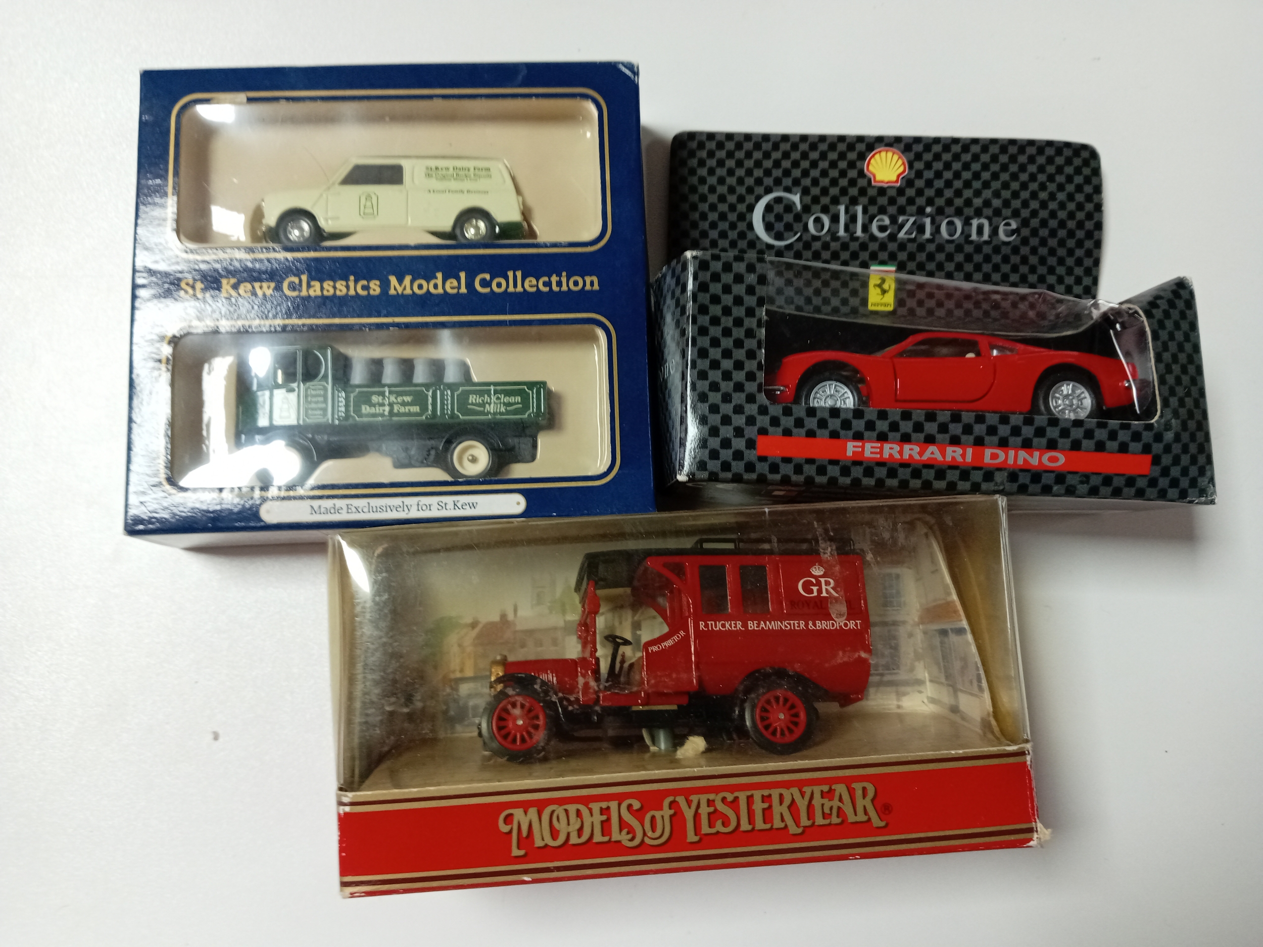 A collection of die cast models to include St. Kew classics, a matchbox models of yesteryear Renault type AG Royal mail truck and a Ferrari Dino from the shell collection.