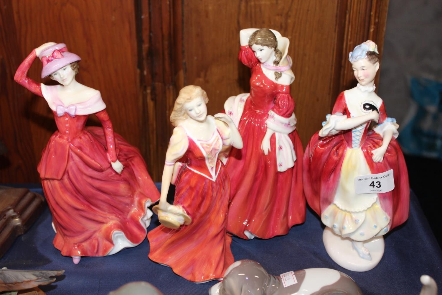 Royal Doulton figures to include HN2259 Masquerade, HN4231 Ellen, HN3755 Strolling, and HN4414 Mary. (4)