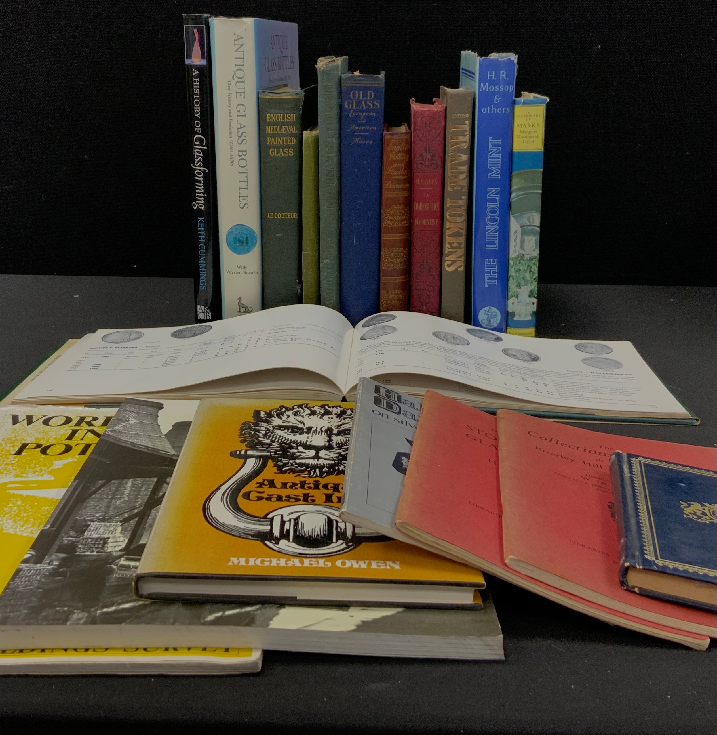 Reference Books - Willy Van den Bossche, Antique glass bottles, their History and Evolution (1500-1850); N. Hudson Moore Old Glass European and American; English Coins & Tokens; English pottery and porcelain; Mayeux, Henri La Composition decorative, ornamental friezes and motifs; etc qty (1 box)