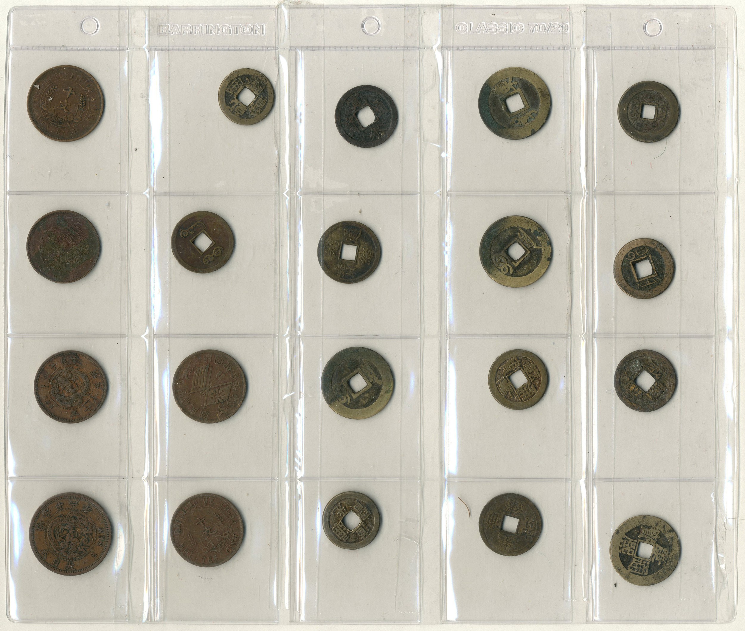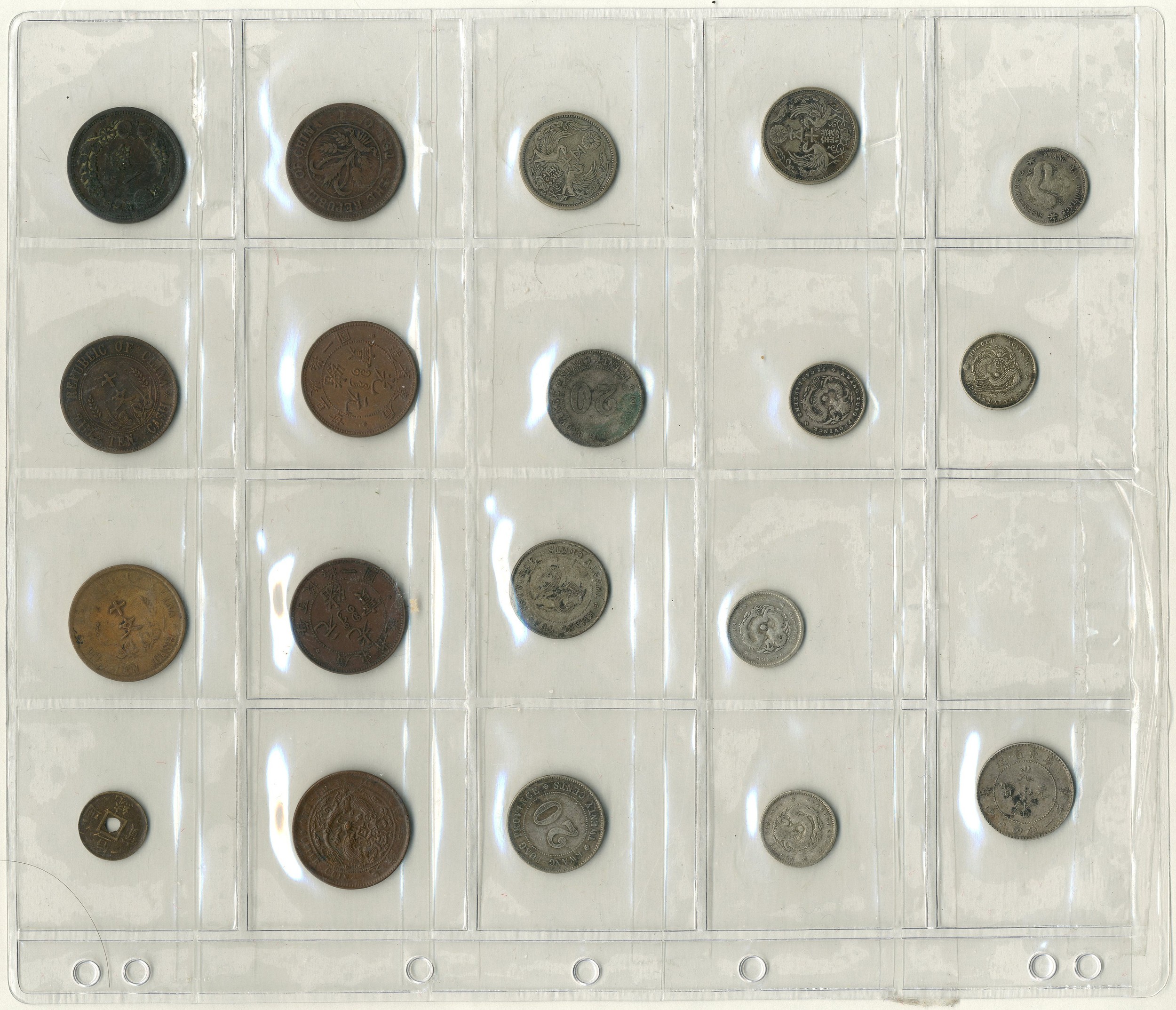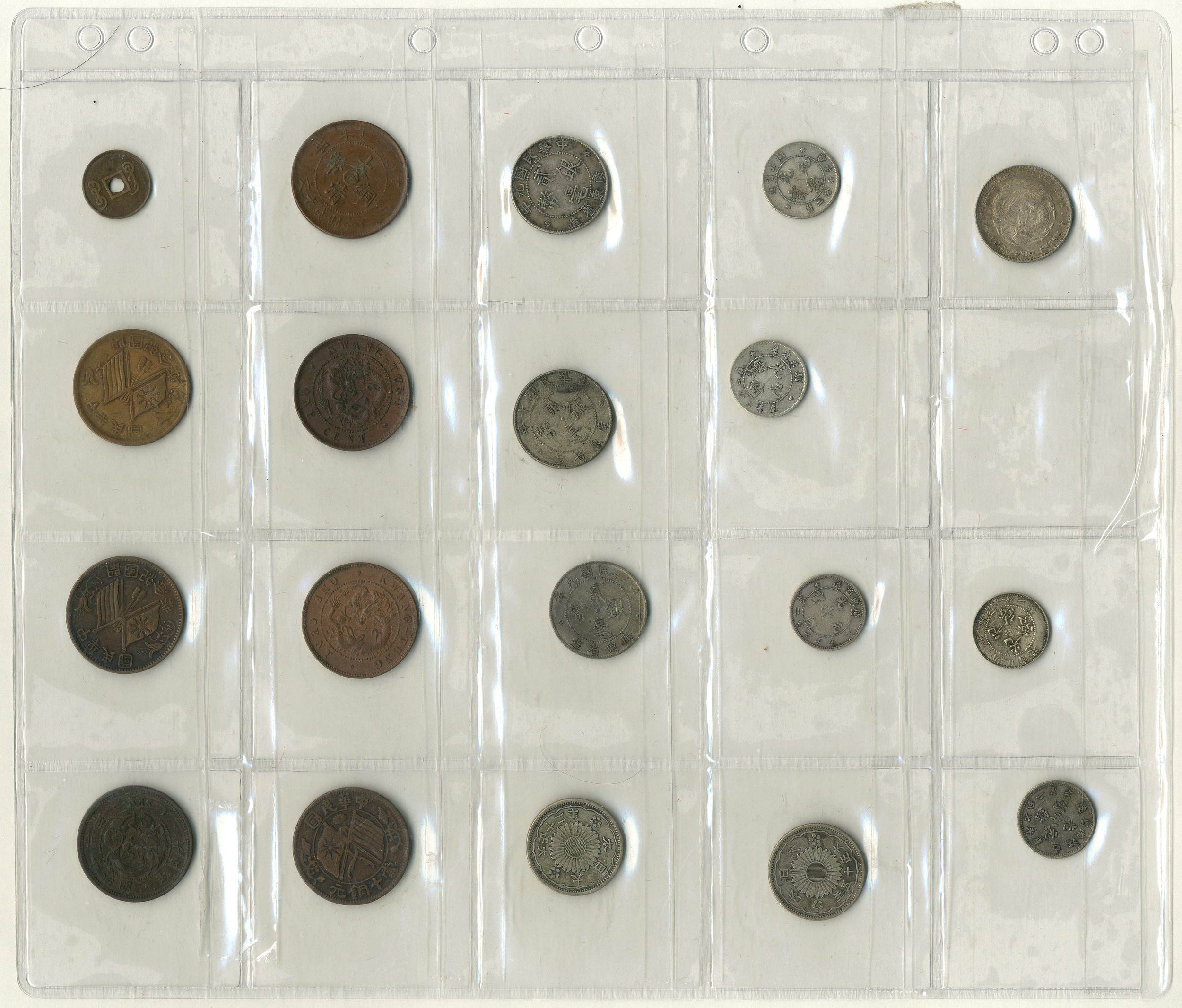 China and Japan, a collection of 79 coins in silver and base metal in 4 plastic pages, sealed with sellotape. Noted is a Kwang Tung, cent in EF condition with traces of lustre. See images for further detail (79).