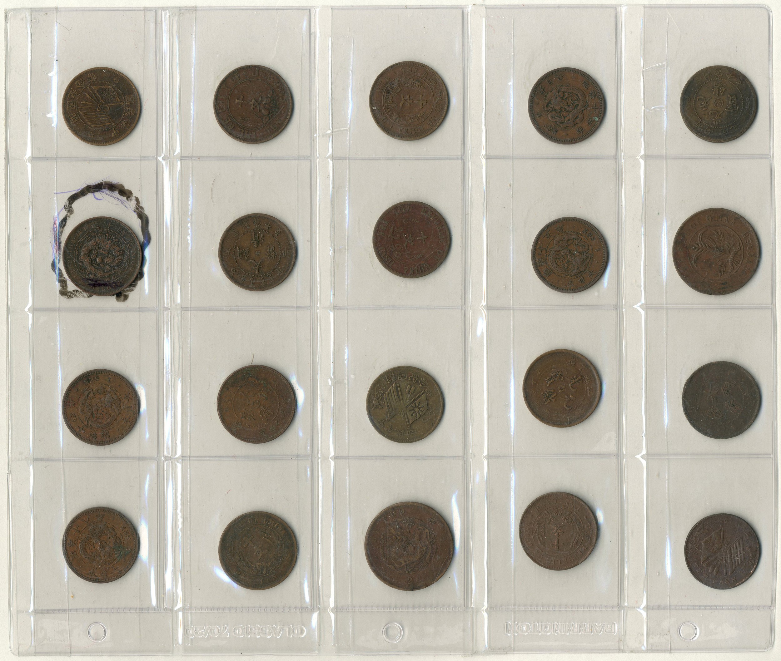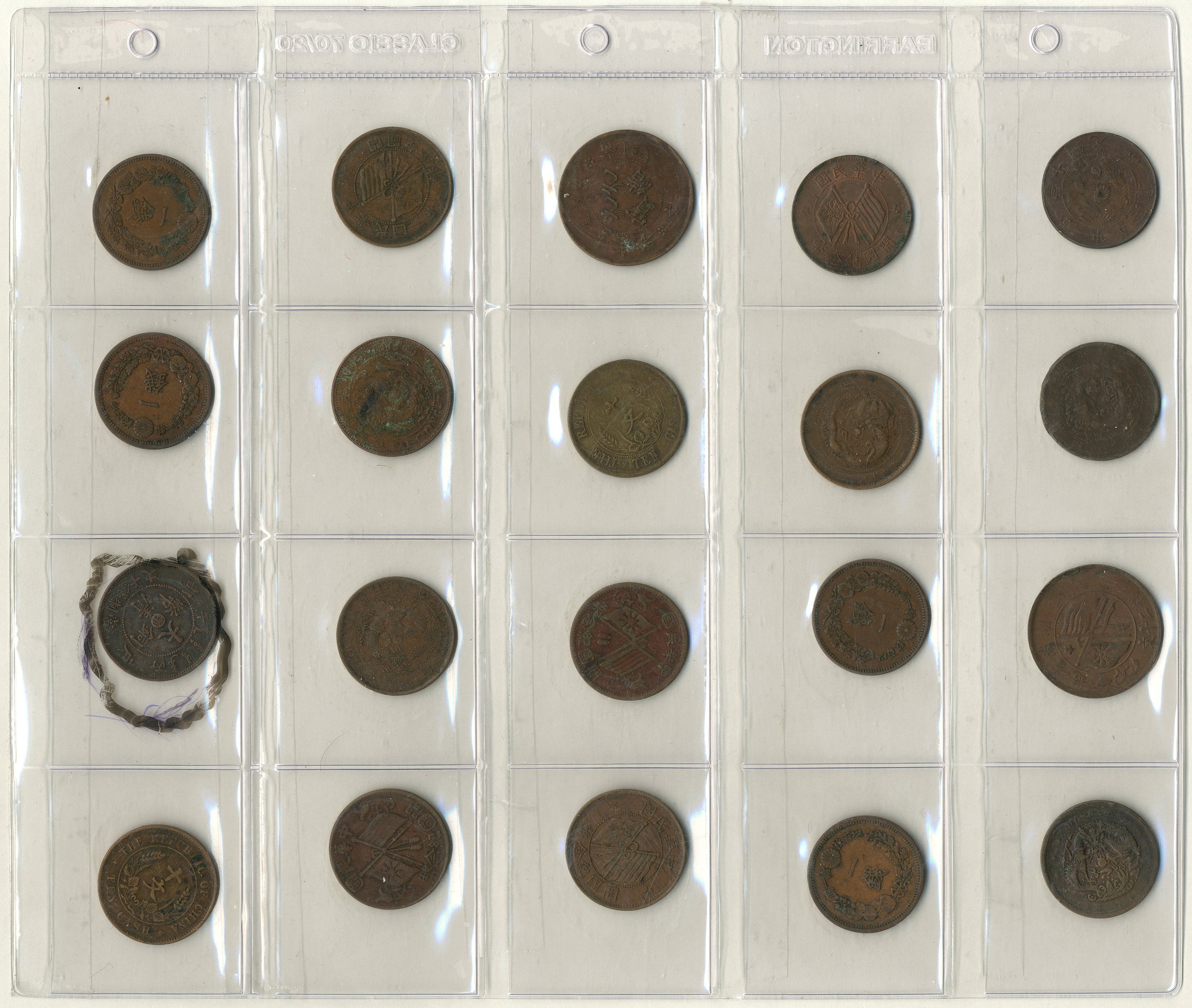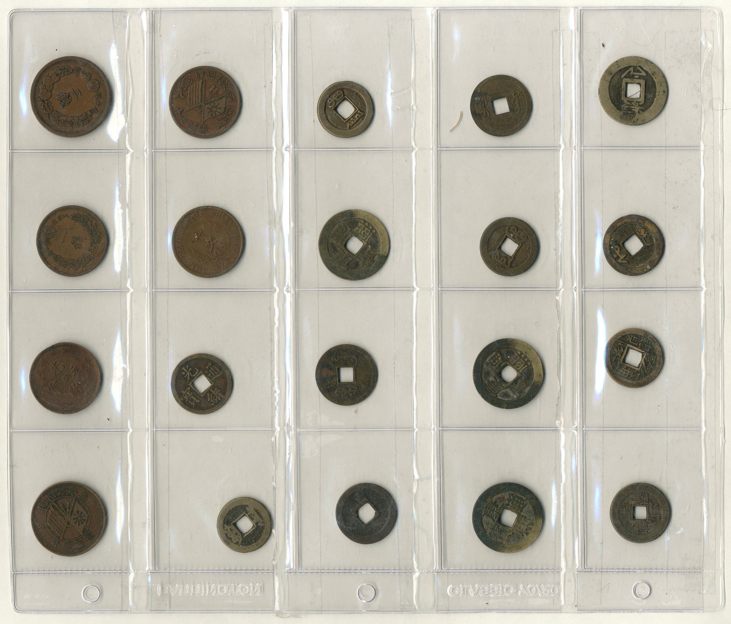 China and Japan, a collection of 79 coins in silver and base metal in 4 plastic pages, sealed with sellotape. Noted is a Kwang Tung, cent in EF condition with traces of lustre. See images for further detail (79).
