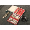 Scent bottle damaged, other pieces in good aged condition, one box stained and tarnishing