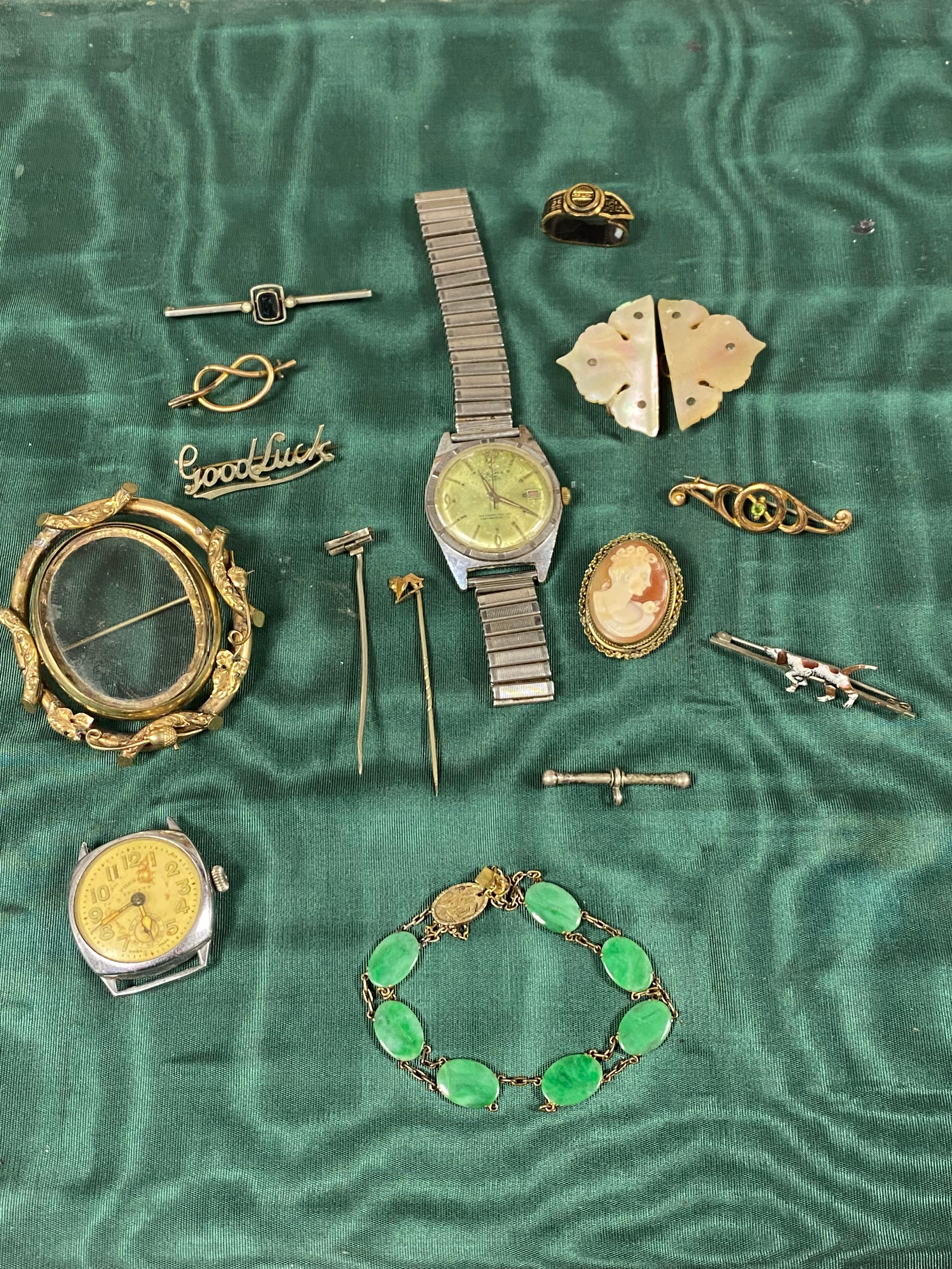 A mixed lot of jewellery items, to include Chinese hardstone bracelet -