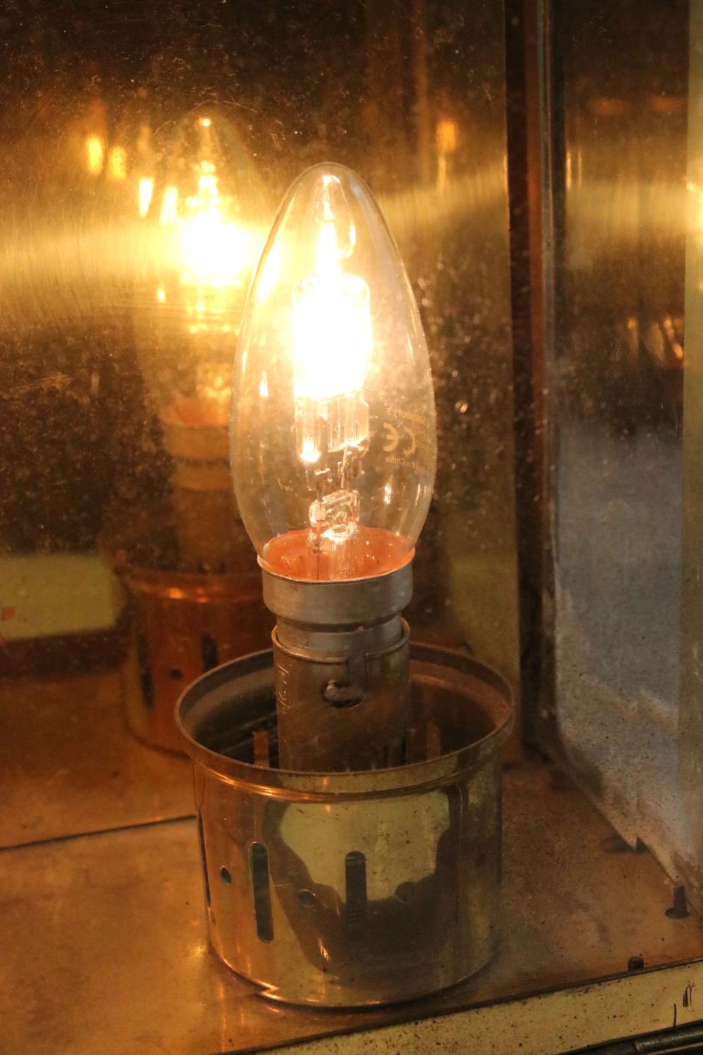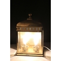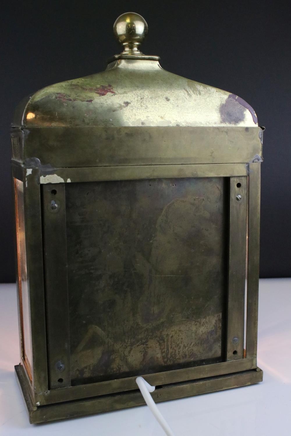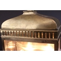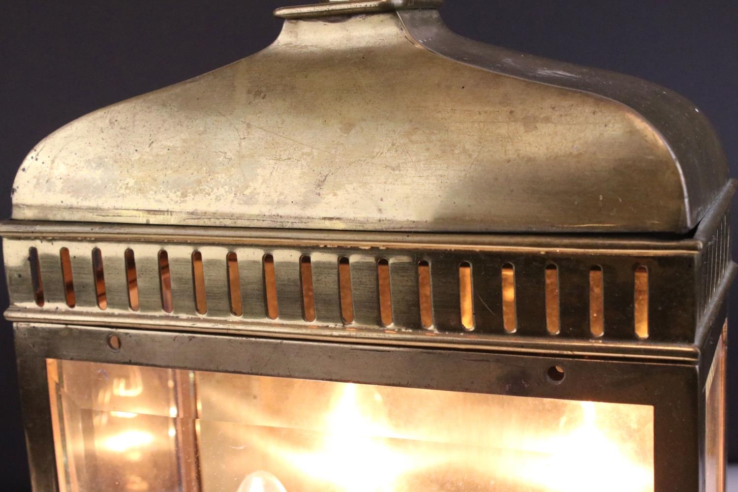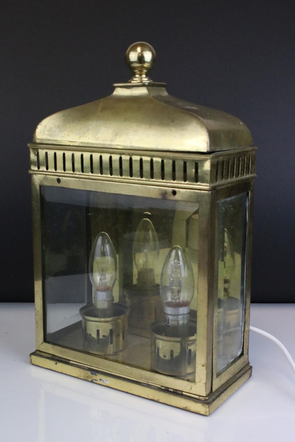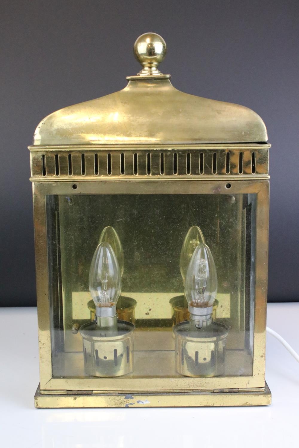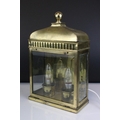 Regency style Brass Lantern with bevelled edge glass panels, the double oil burners converted to electric, 38cms high