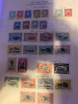 Belgian Congo 1885-1935 colln on vintage ideal printed leaves an excellent depth of material m/u virtually complete fu period with few gaps 1885 issues cds to 5F 1887 to 5F (Fault) thereafter lovely range of commems, various printings from 1894-96 complete to 5F 1898 3.50 cds 1900 set to 1F both shades 1909 ovptd to 10F steamer cds 1910 to 3F & 10F mint, 1921 ovptd complete further 1920s/30s sets m/u a lovely lot with some brilliant strikes odd fault in first issues otherwise nice condition much fine 100s