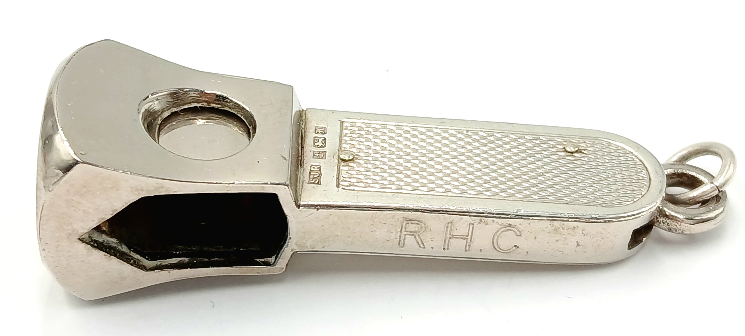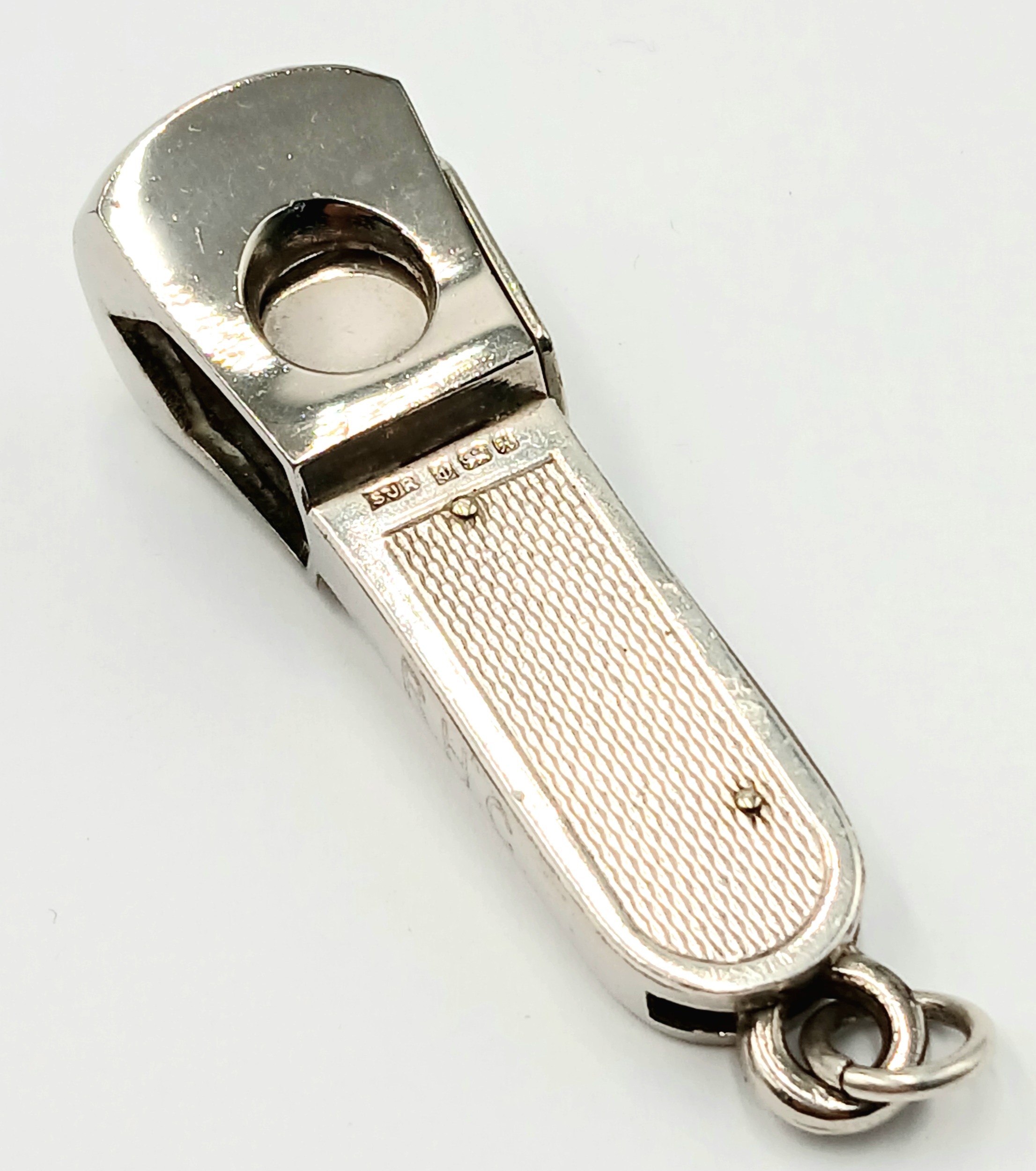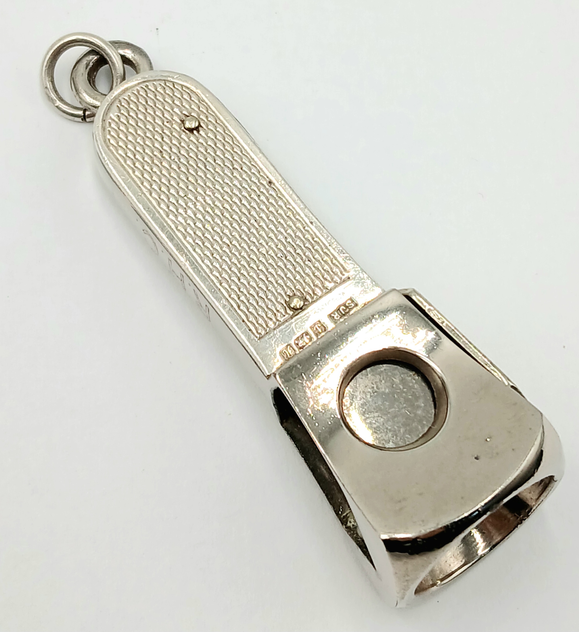 Fully hallmarked Vintage SILVER CIGAR CUTTER. Pocket sized. Engine Turned Design. Working order. Excellent condition.