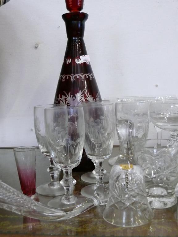 NICE SELECTION OF GLASSWARE INCLUDING A GLASS HORN