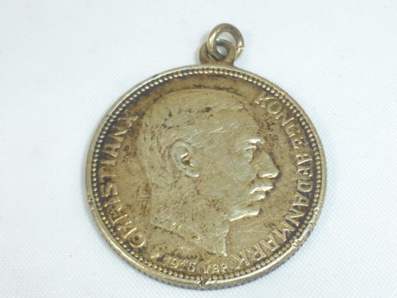 Christian X 1915 Faced Gold Pendant with Inscription to Rear