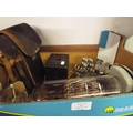 A mixed selection to include vintage cameras, L.A. Rock radio, pewter model of HMS Victor and ship in a glass bottle
