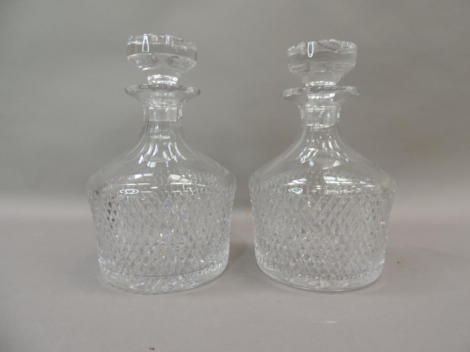 A pair of cut glass decanters and stoppers, 22cm high