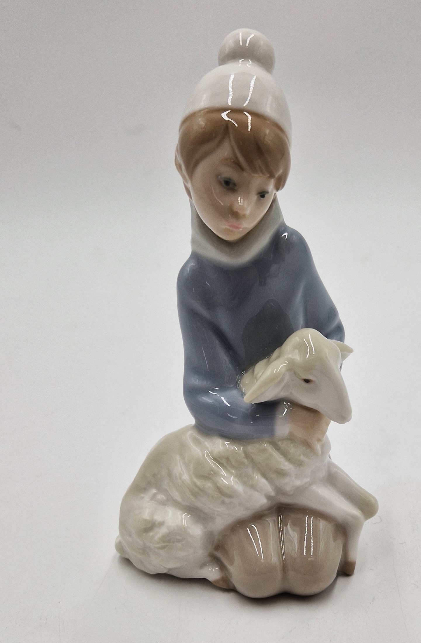 LLADRO PORCELAIN 15cm CHARACTER FIGURINE OF A SHEPHERD WITH LAMB (Model No 4676) 1970/92 Modelled By Juan Huerta