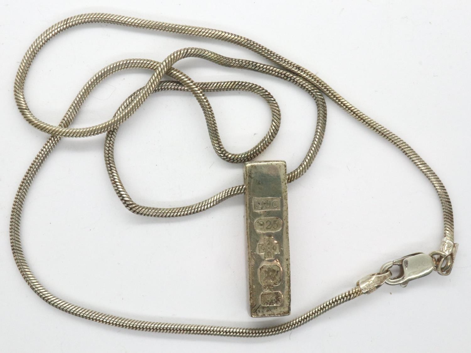 Boxed silver 925 ingot pendant on a silver chain, L: 22 cm, 15g. P&P Group 1 (£14+VAT for the first lot and £1+VAT for subsequent lots)