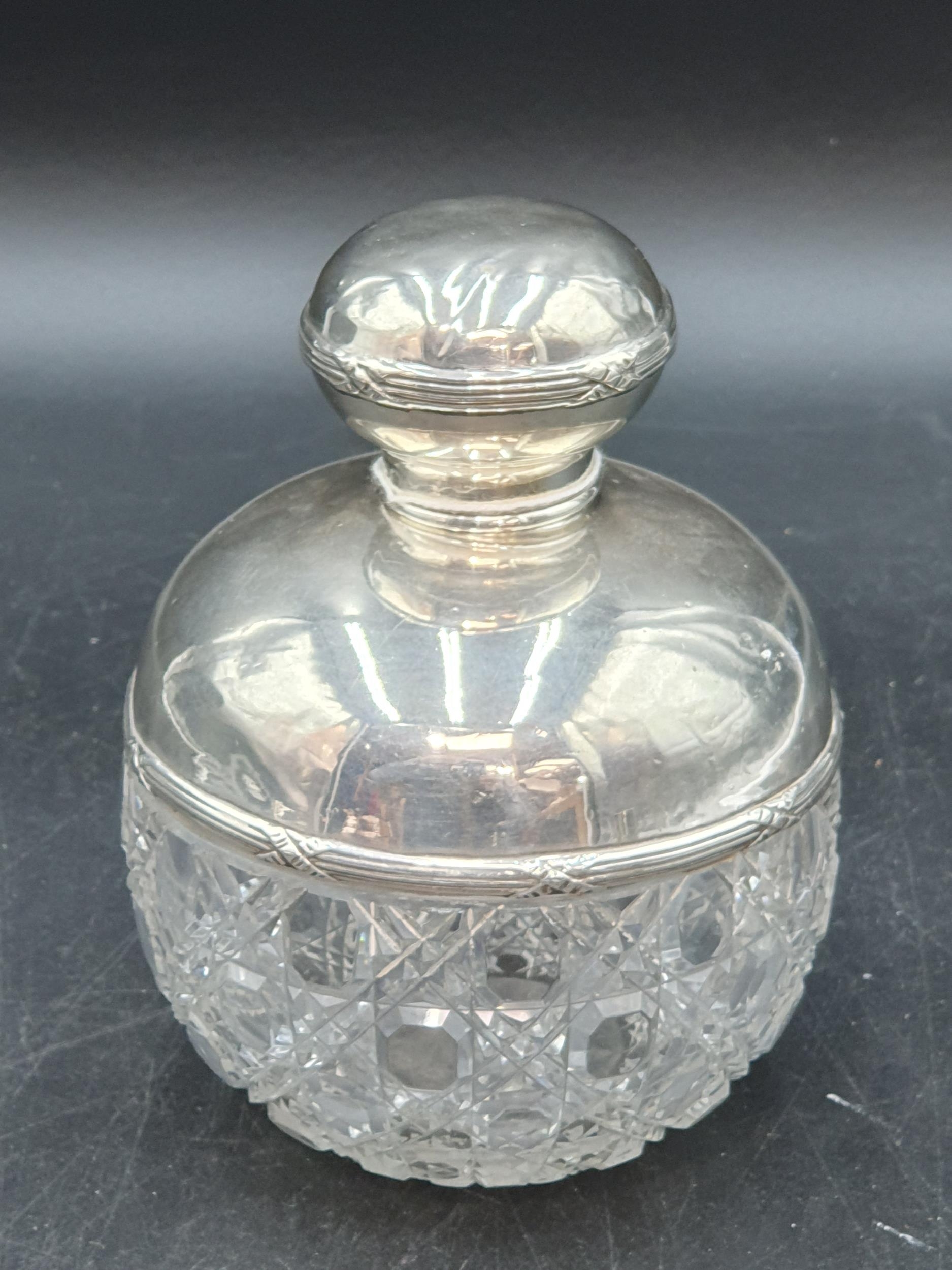 An Edward VII silver mounted and lidded cut glass Scent Bottle, Birmingham 1909