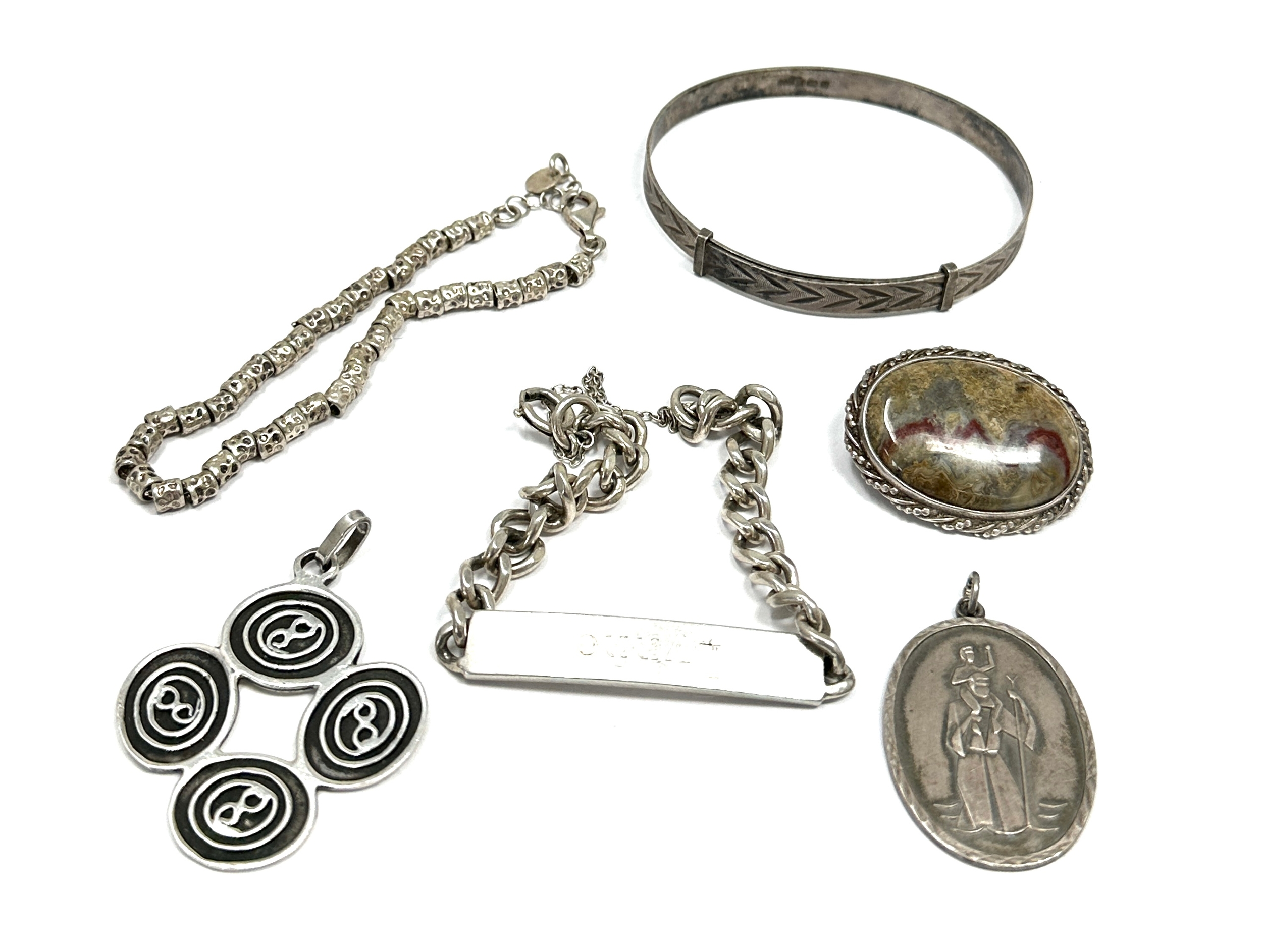 Selection of vintage silver jewellery inc pendant i.d bracelet brooch etc weight 72g