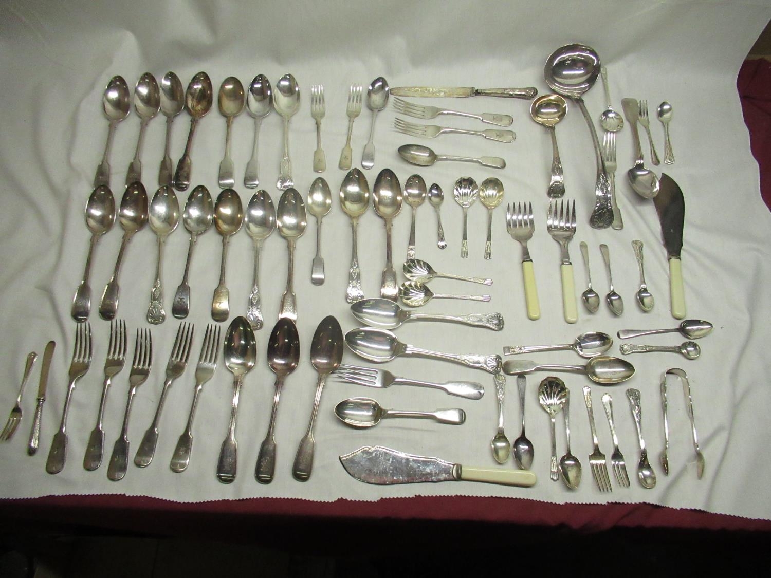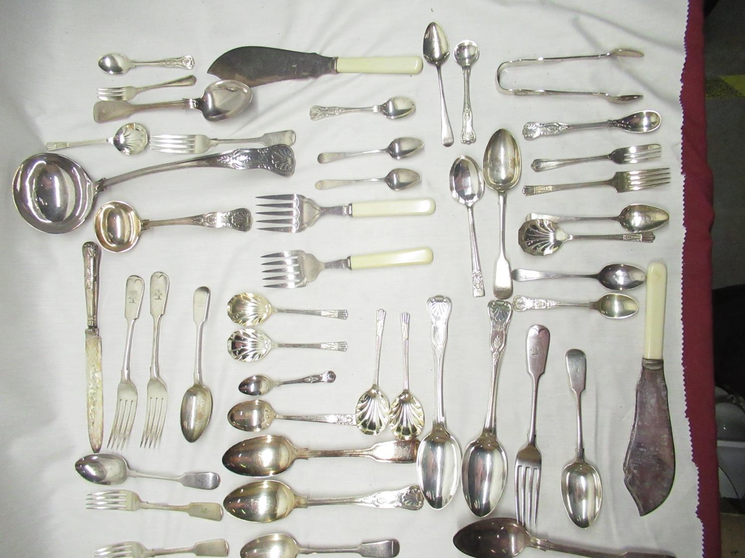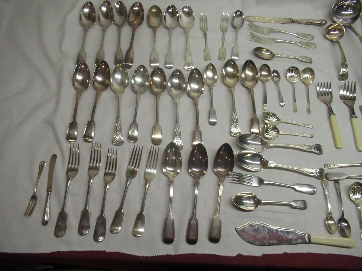 Collection of Spoons, Forks and Knives, of which most are monogrammed
