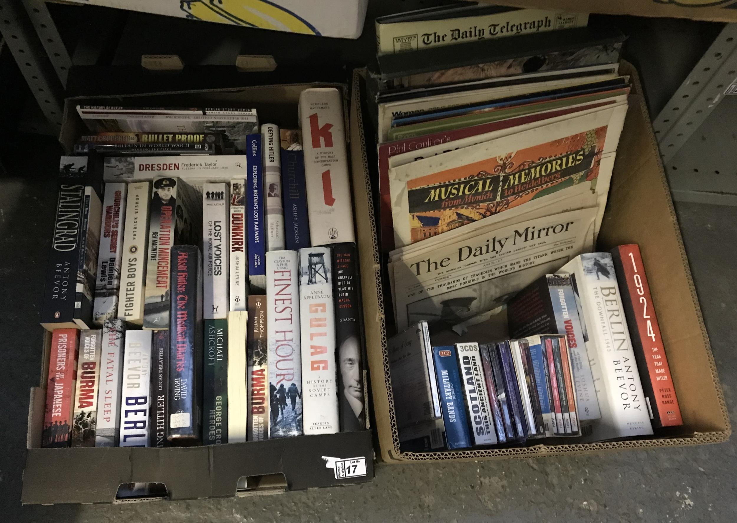 2 Boxes containing war time books etc