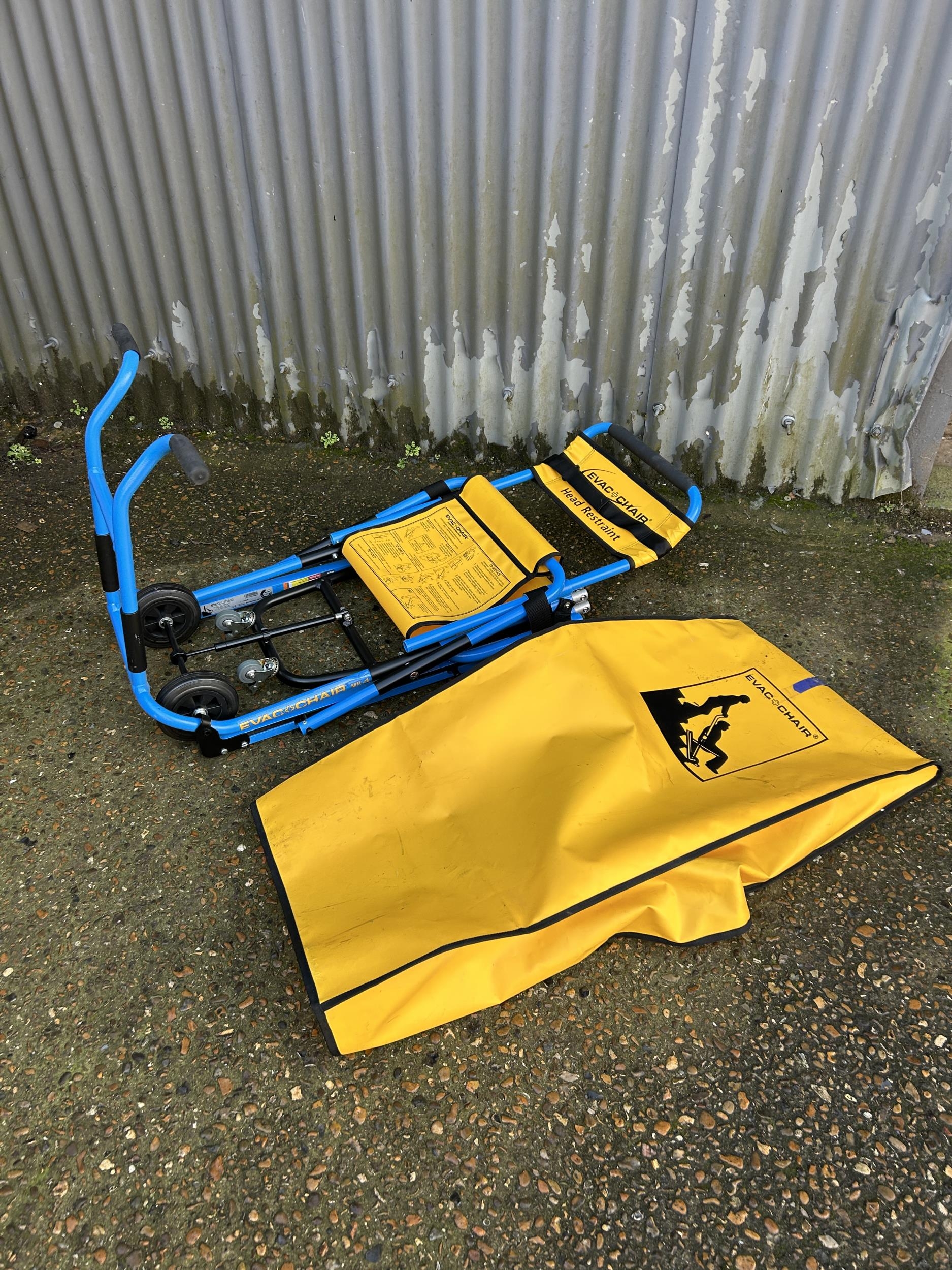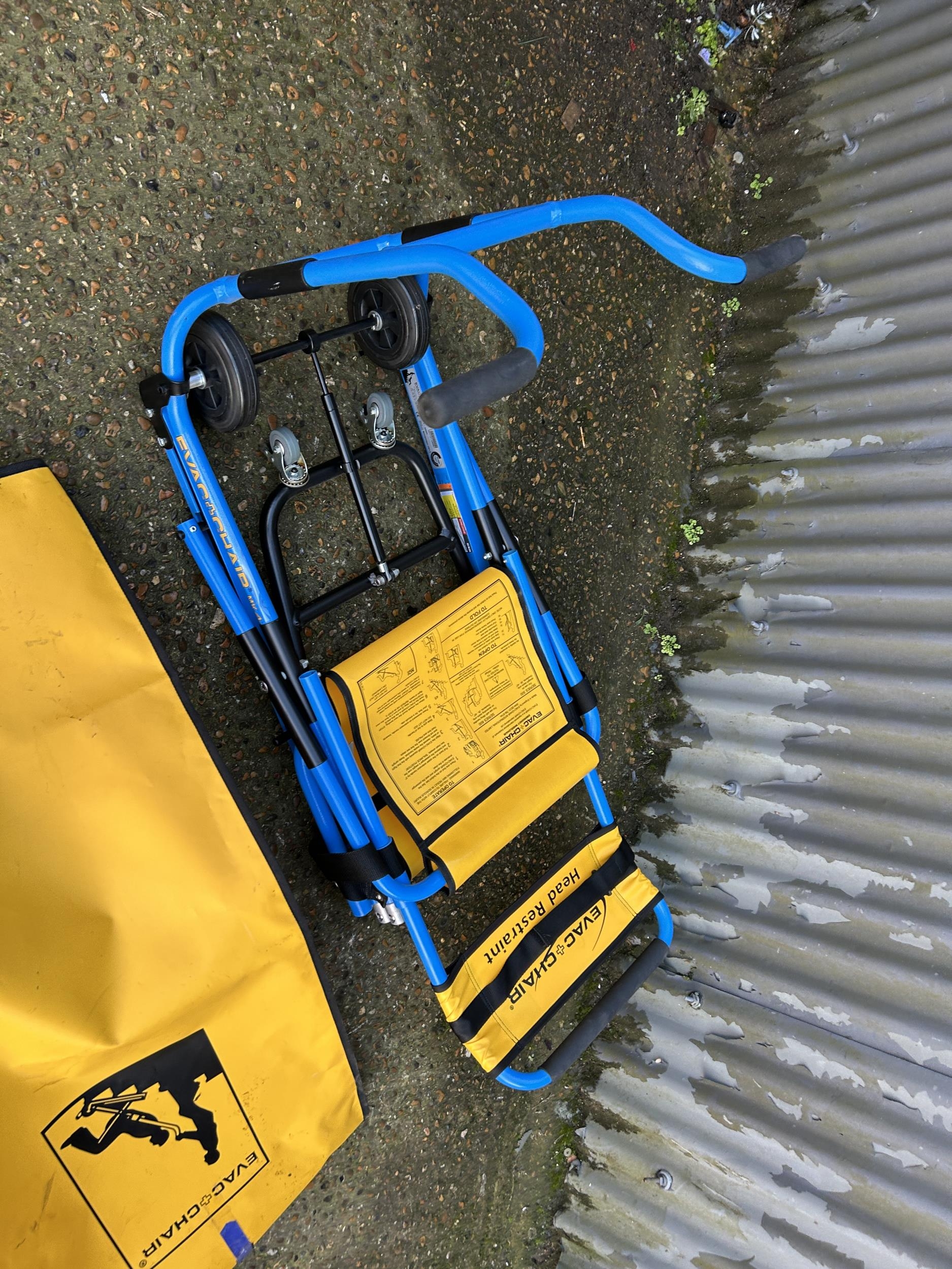A folding EVAC CHAIR with yellow cover