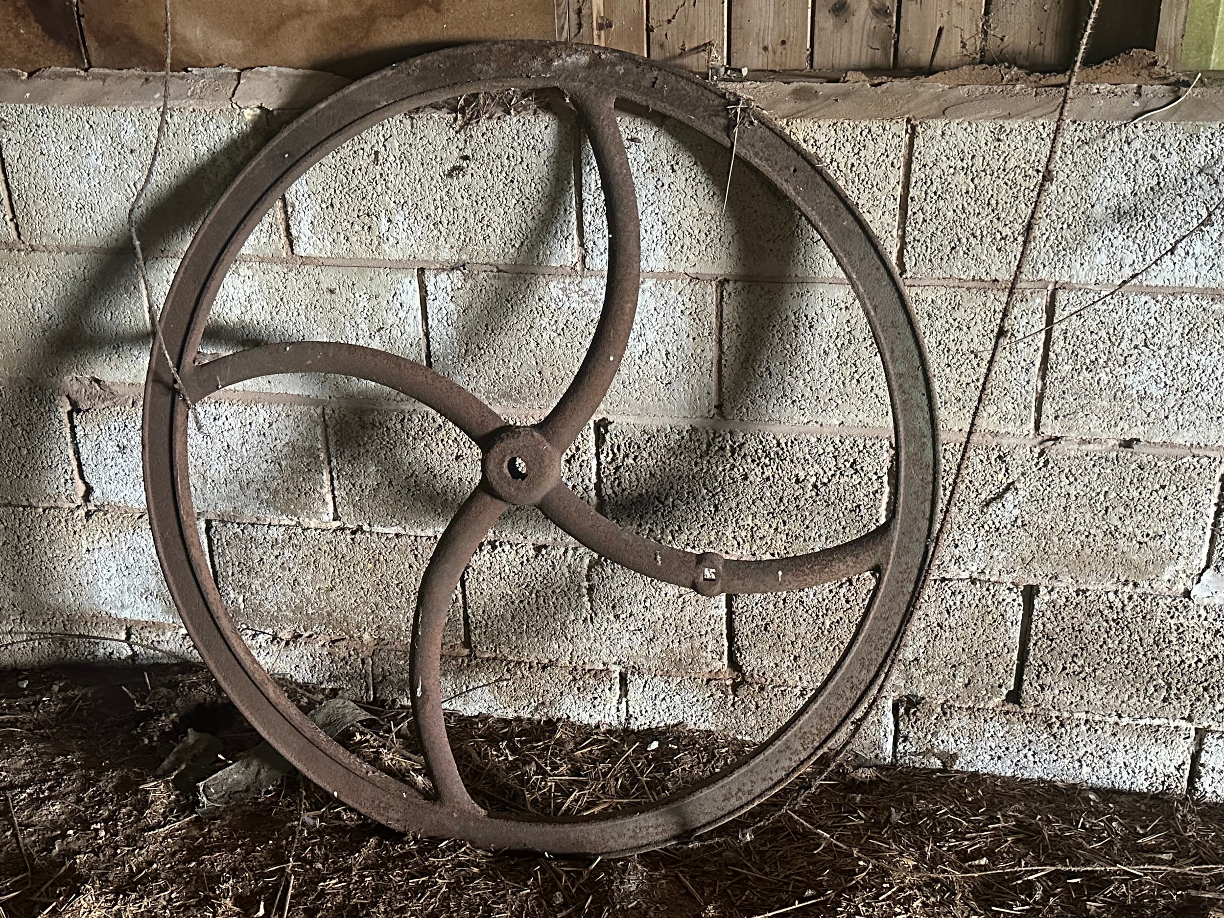 IRON WINDING WHEEL, APPROX. 118cm dia.