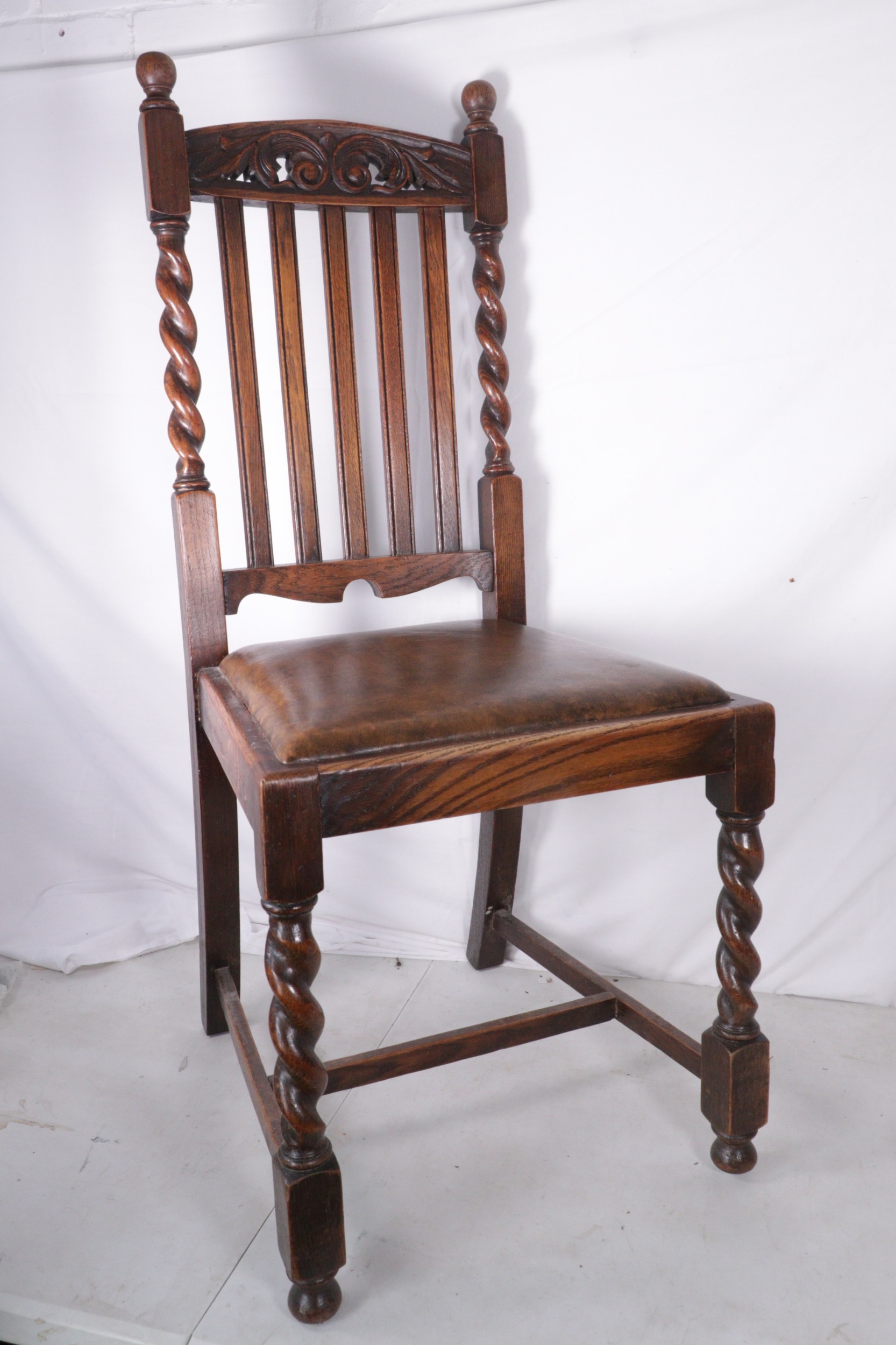 Five barley twist chairs with removable seat pads.