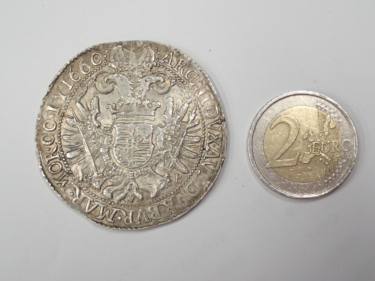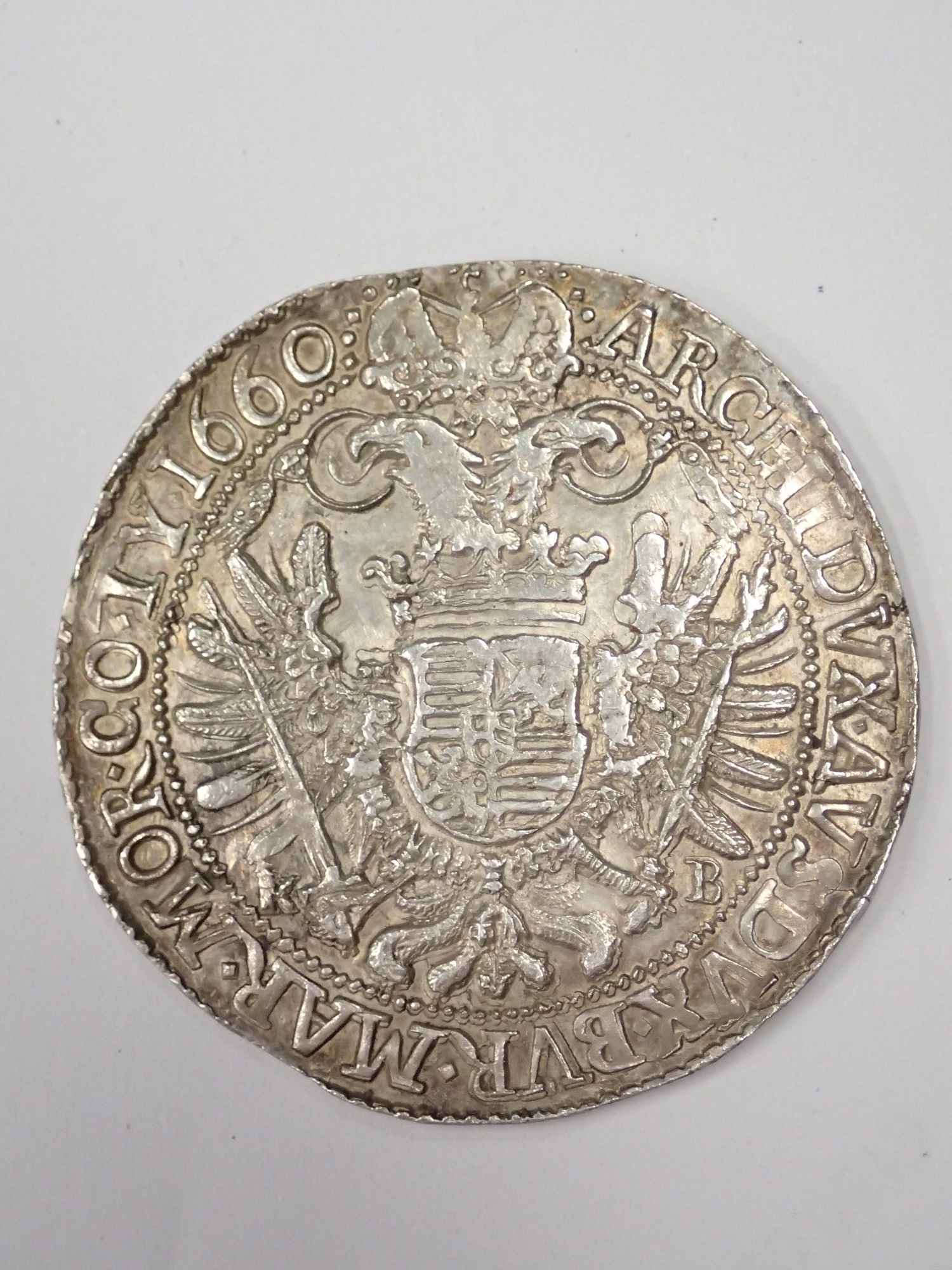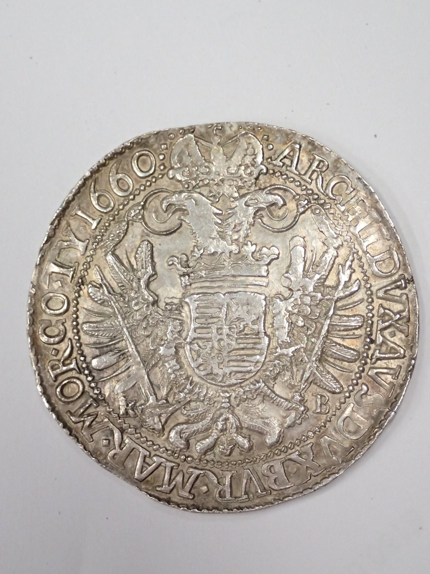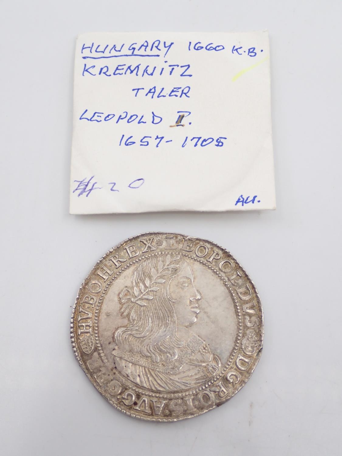 A coin from Hungary dated 1660 (A Taler of the Holy Roman Empire struck for Hungary. Kremnitz. Early portrait of Emperor Leopold) approx. 28.7 grams