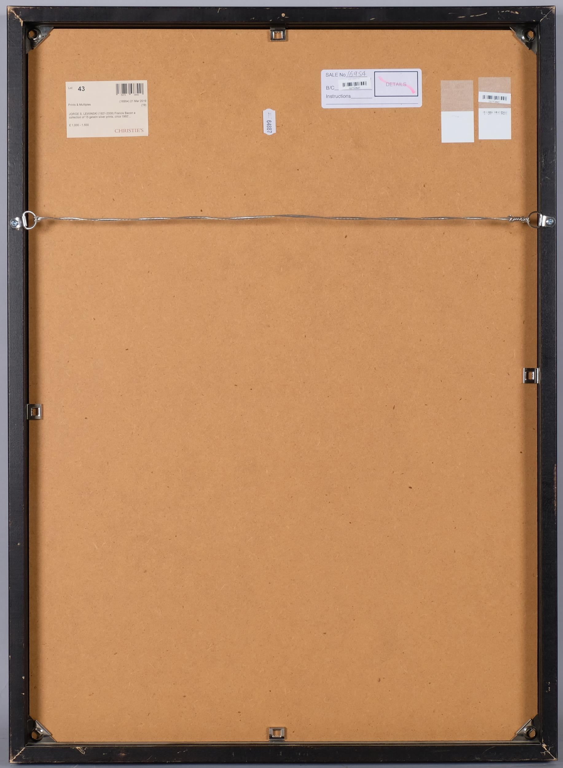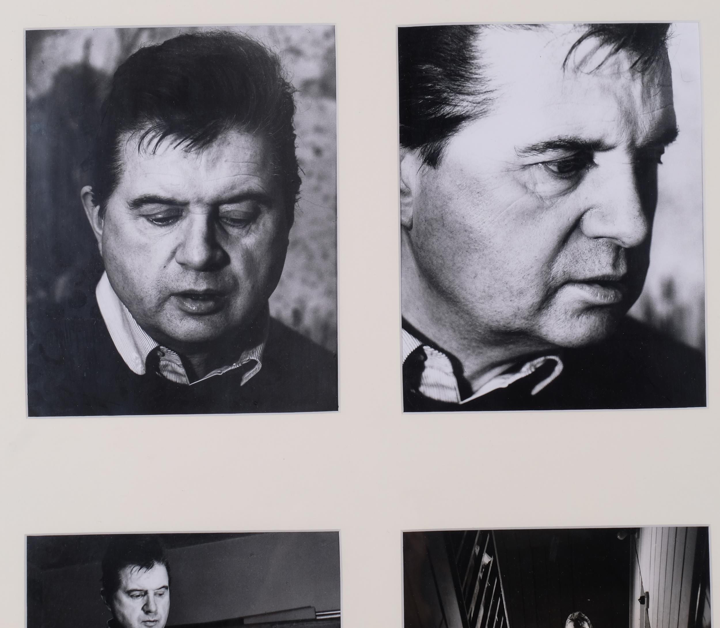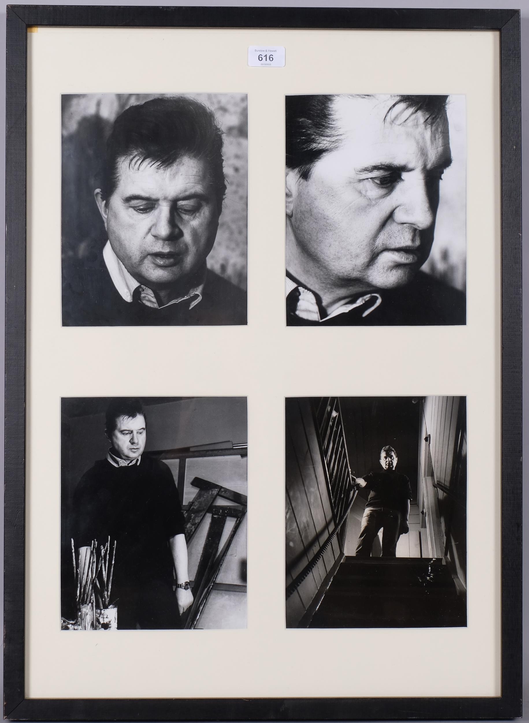 Francis Bacon, four portrait studies, original silver gelatine photographs by Jorge Lewinski circa 1970, studio stamp of the photographer, each circa 195mm x 248mm, modern frame and mount, overall frame dimensions 74cm x 53cm, from the collection of John Edwards (Bacon's companion from the mid 1970s)
