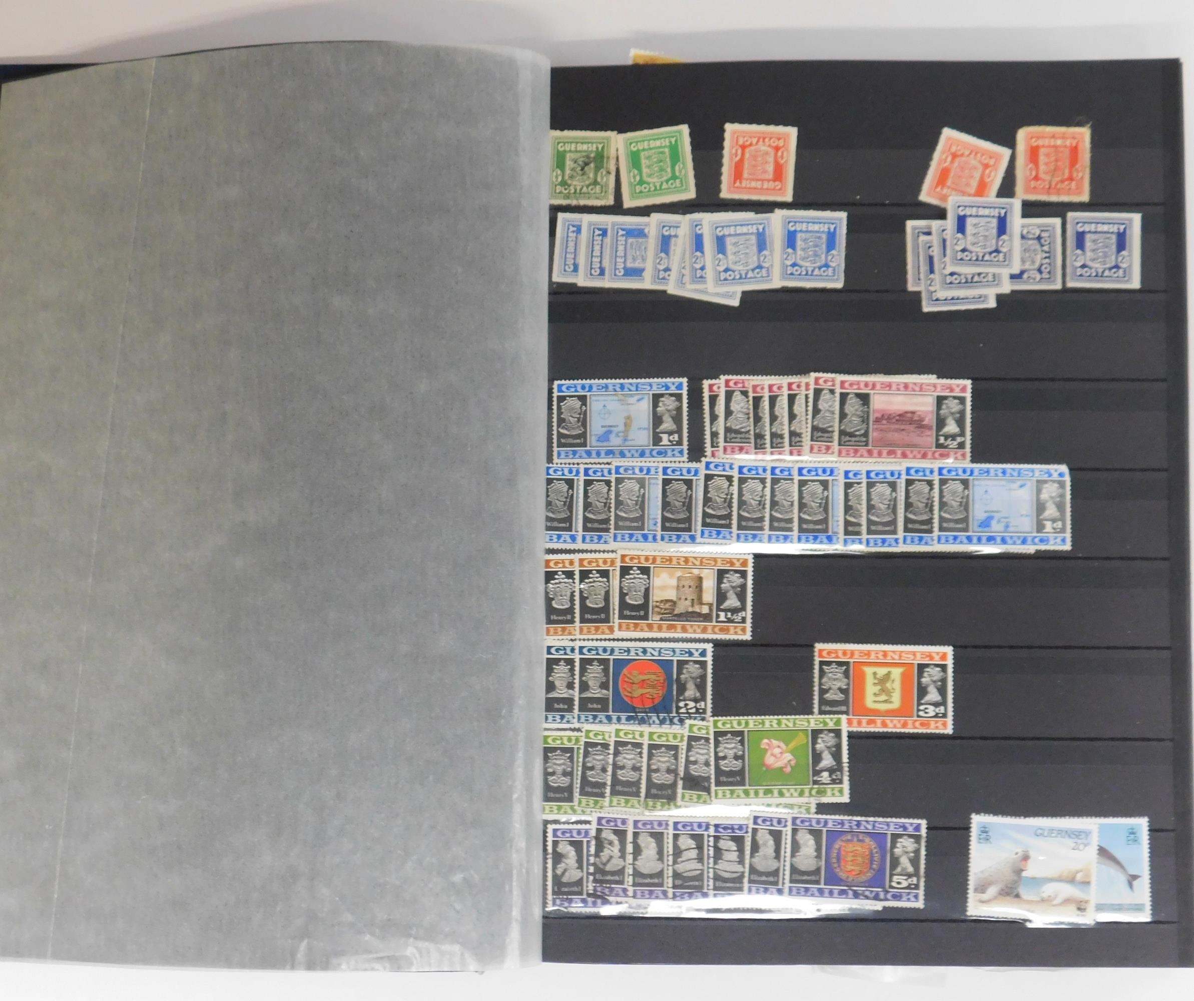 Large well filled stock book of Guensey stamps, wartime issues etc.