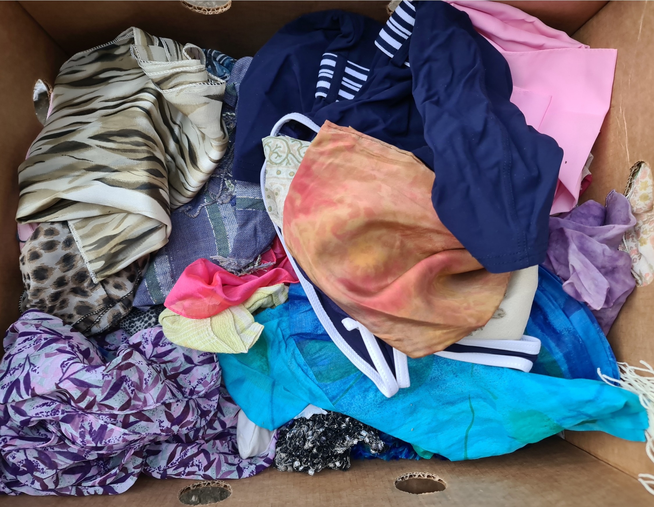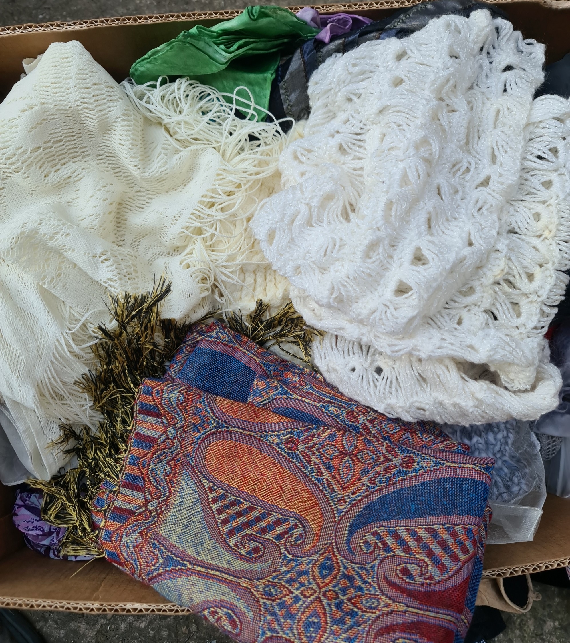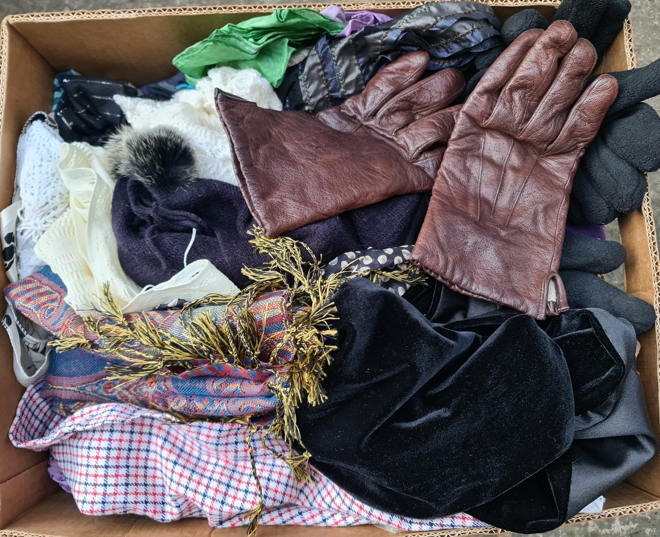 Vintage Clothing Banana Box Full. Includes Gloves Scarves etc. Shipping is available. Please ask for a quote before bidding. Where possible we combine shipping costs. Remember, if you are the highest bidder above reserve on this Lot you have bought the item and are legally responsible for the item. Viewing is recommended in either person or via video link. Contact us to arrange.