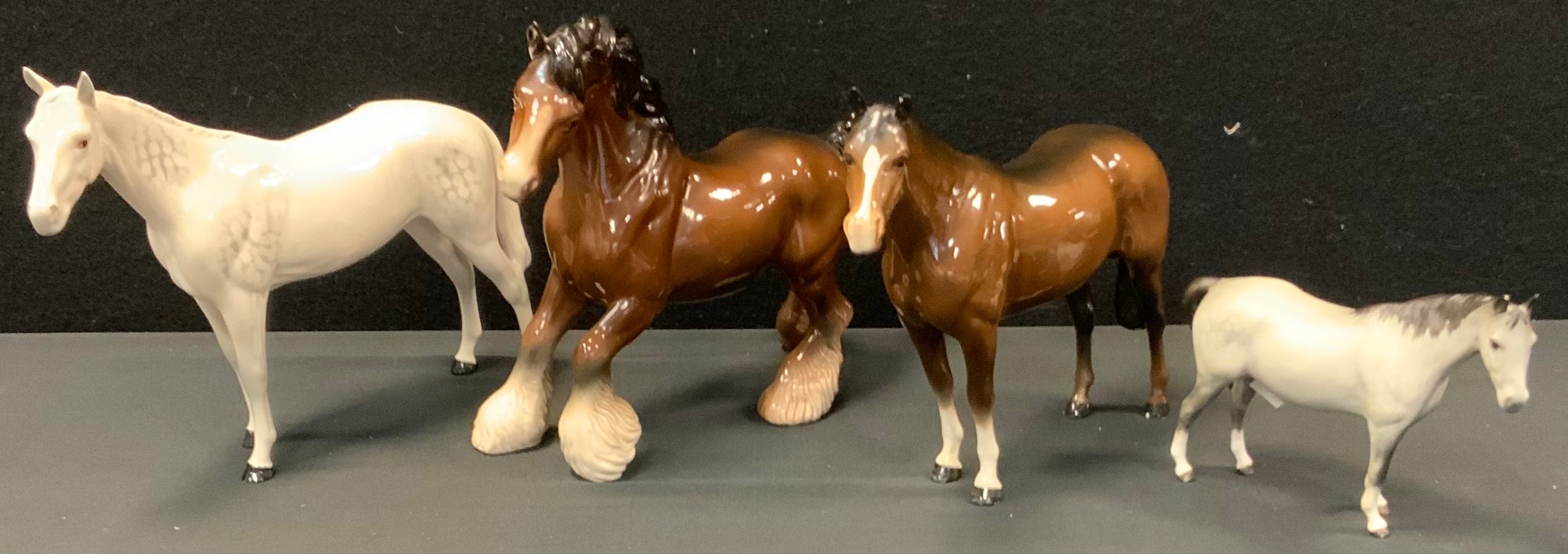 A Beswick model Horse, matt colourway; others Royal Doulton, Hunter, grey, cantering Shire etc (4)