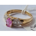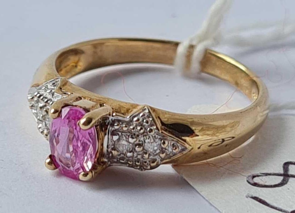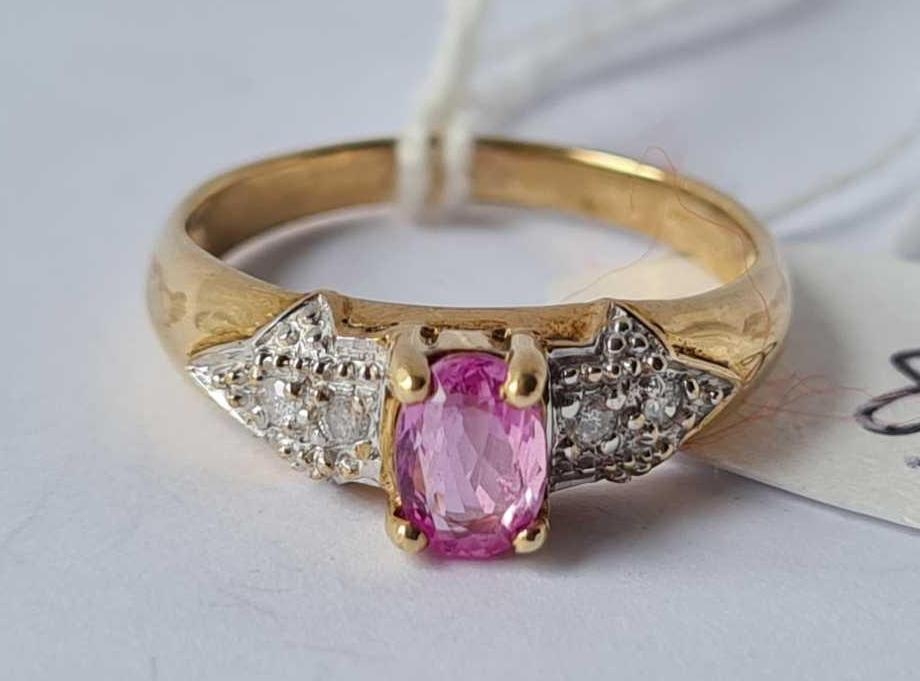 A pink sapphire ring set with diamond shoulders size N 2.3g inc