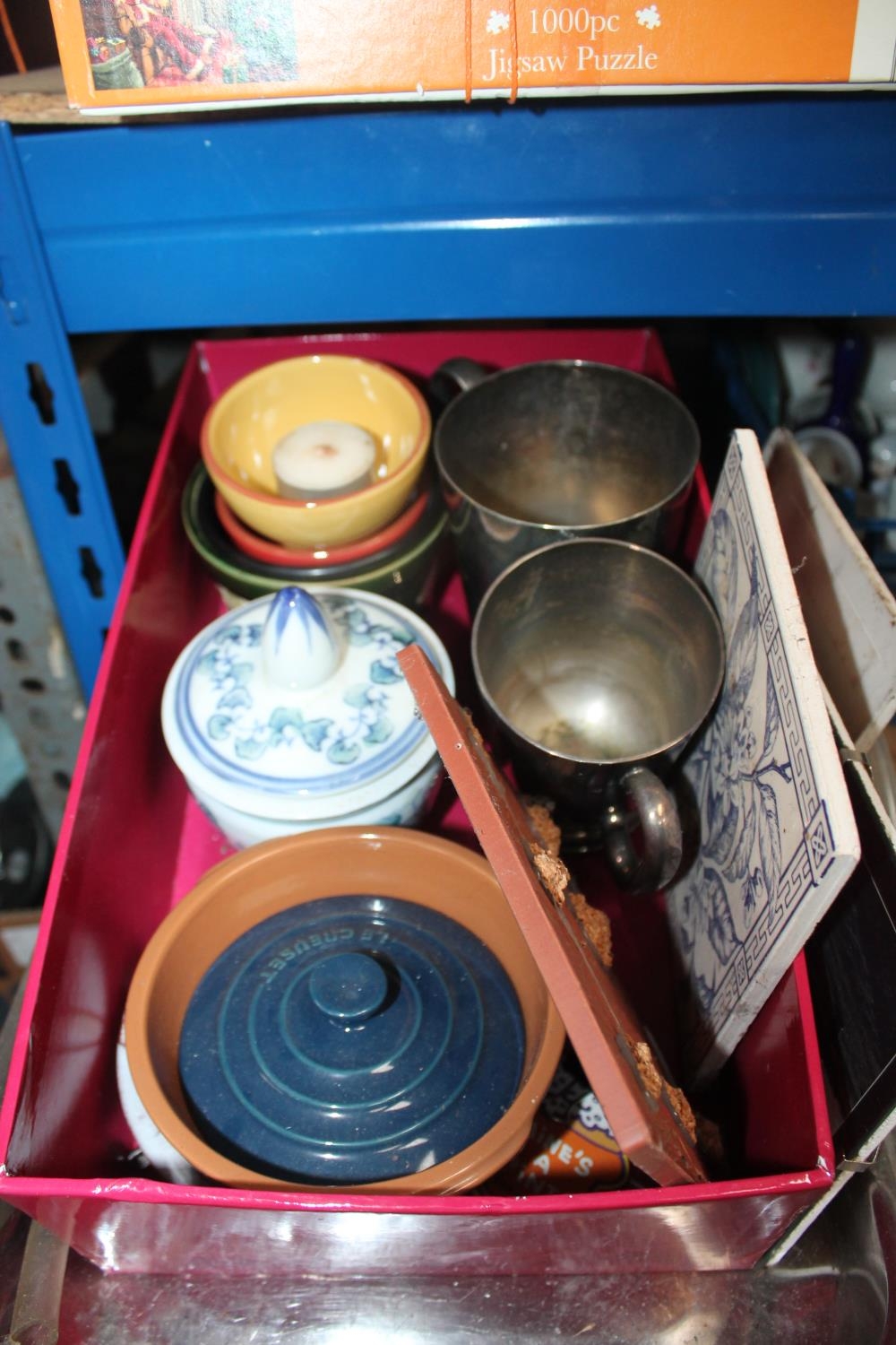 METAL TRAY OF SMALL POTS, DISHES ETC