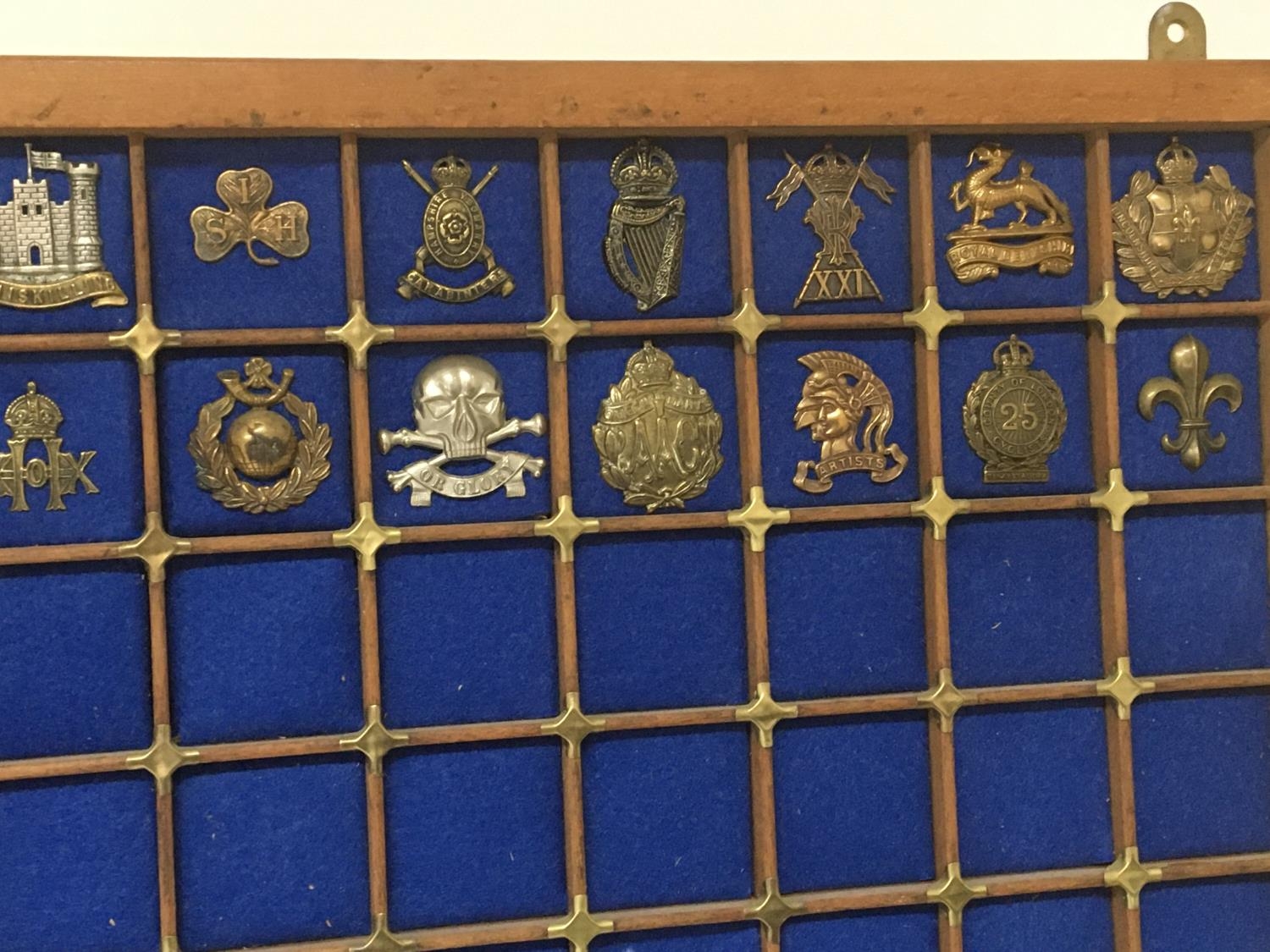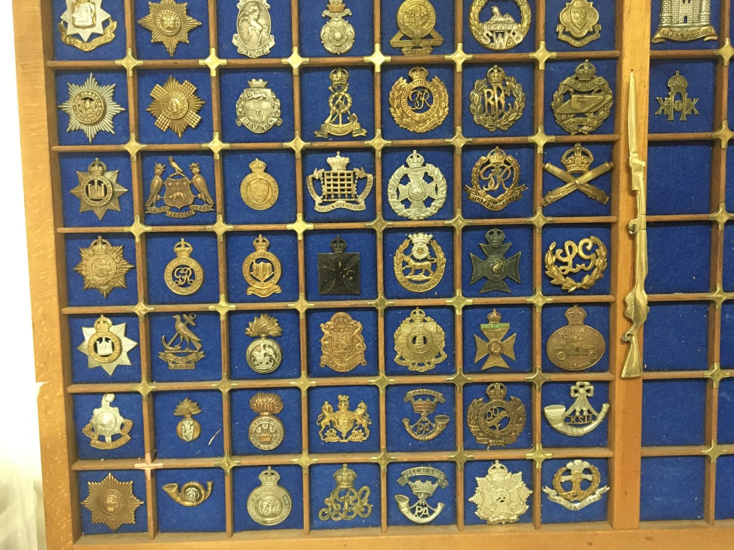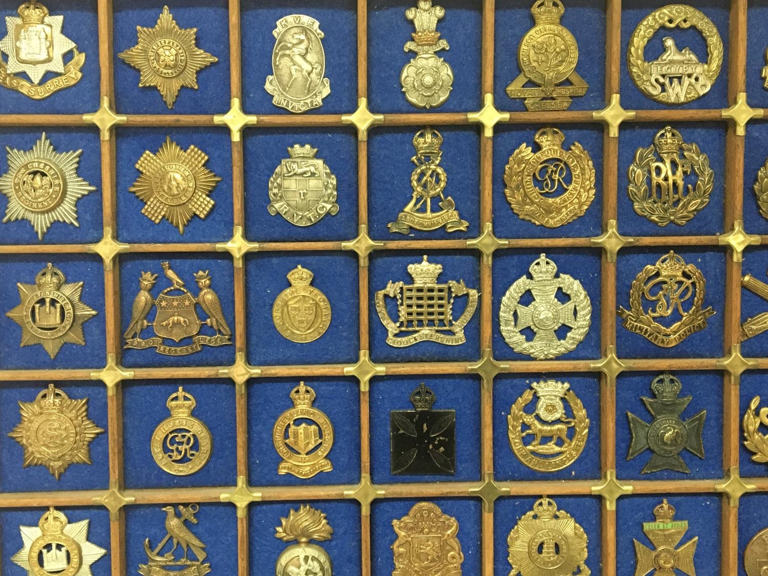 A collection of British military cap badges mounted in a frame.(a lot)