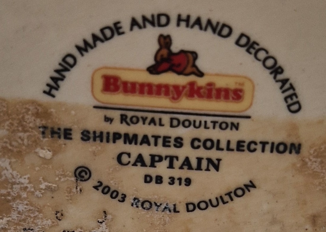 ROYAL DOULTON 12cm BUNNYKINS CHARACTER FIGURINE "THE CAPTAIN BUNNYKINS" DB 319 2004/2006 Designed By Caroline Dadd FOR THE SHIPMATES COLLECTION.