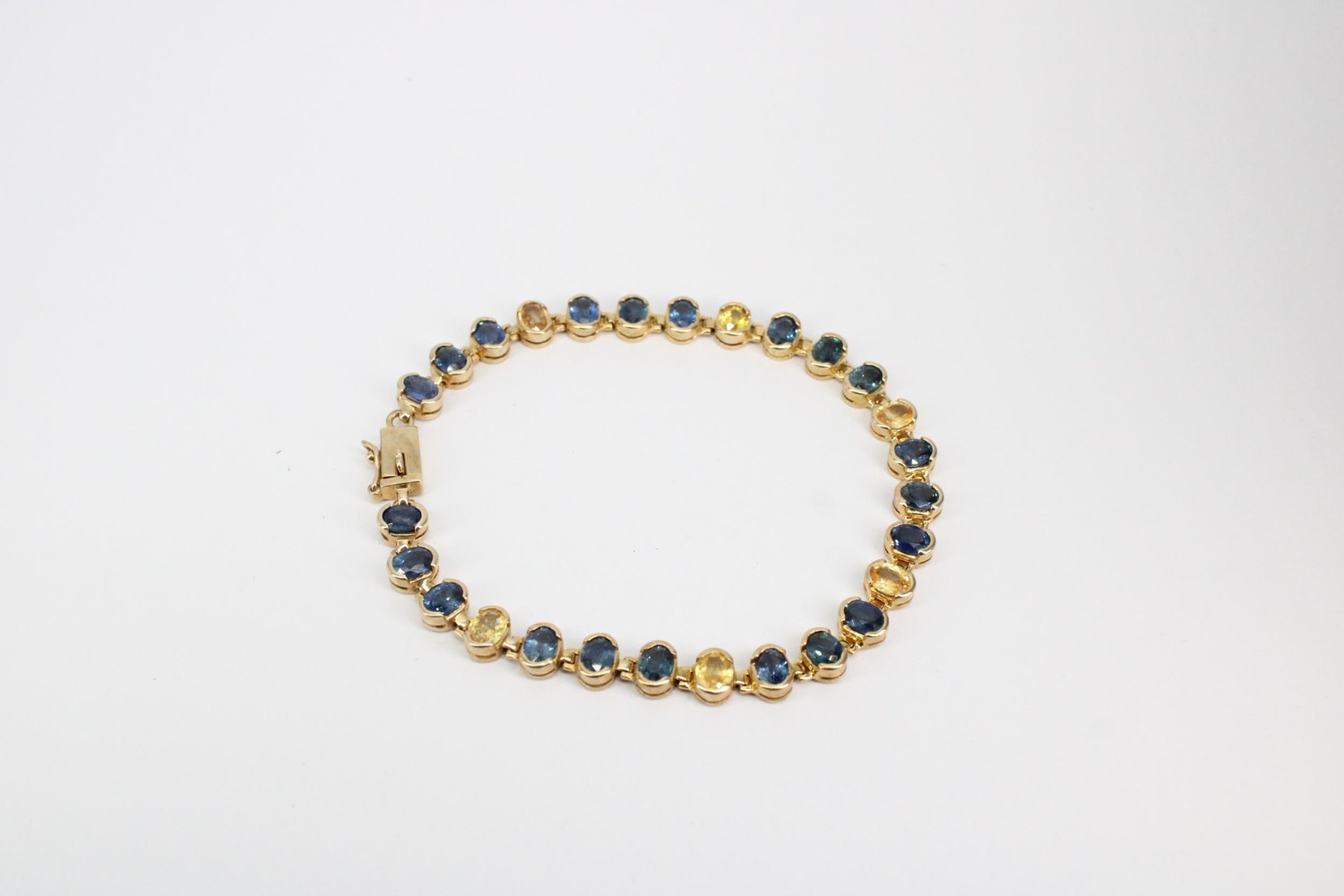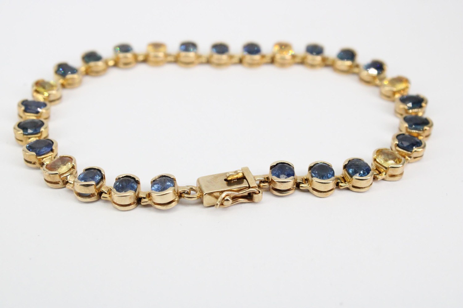 A 9ct gold sapphire panel bracelet. Weight 15.83 grams
