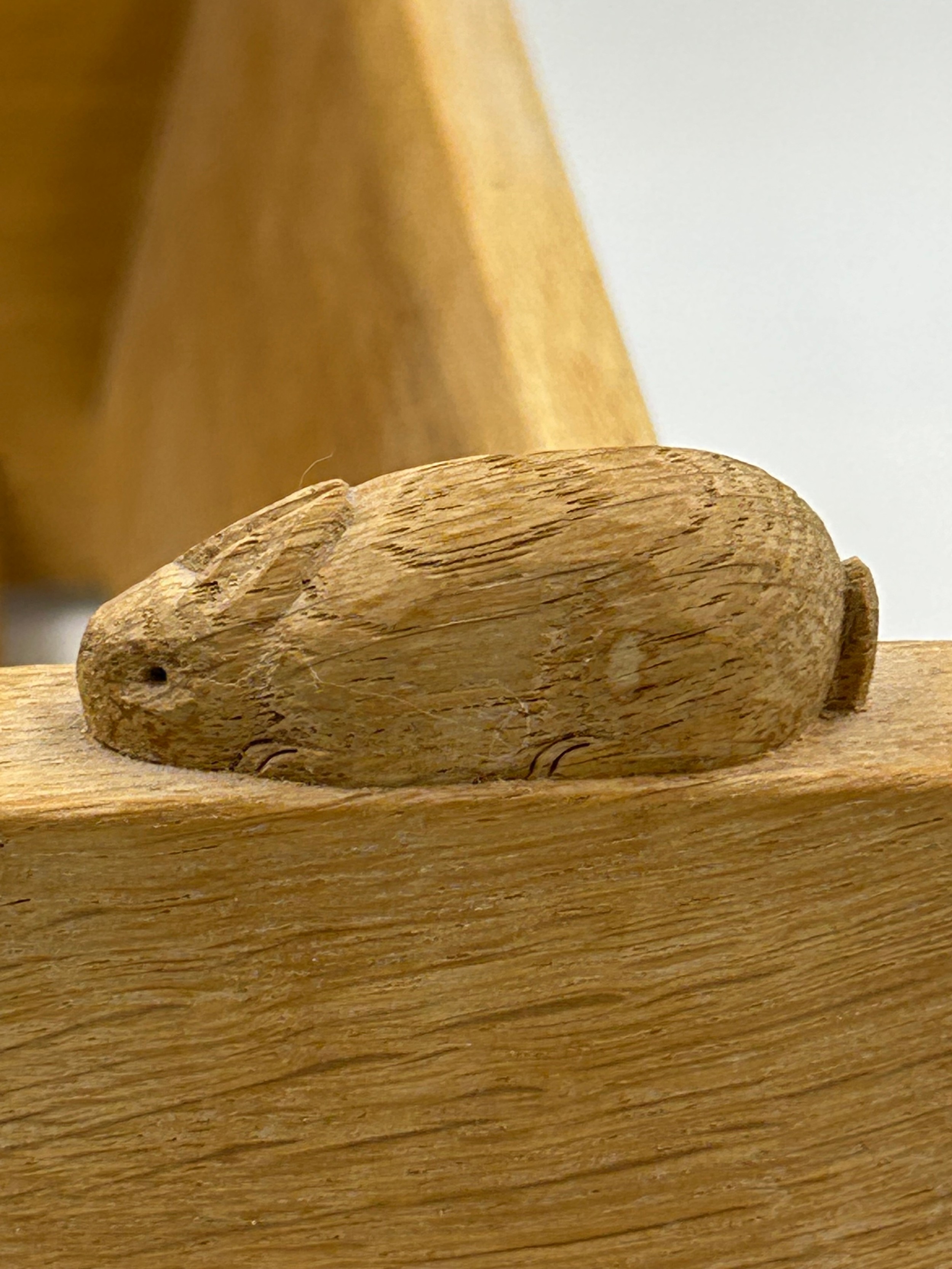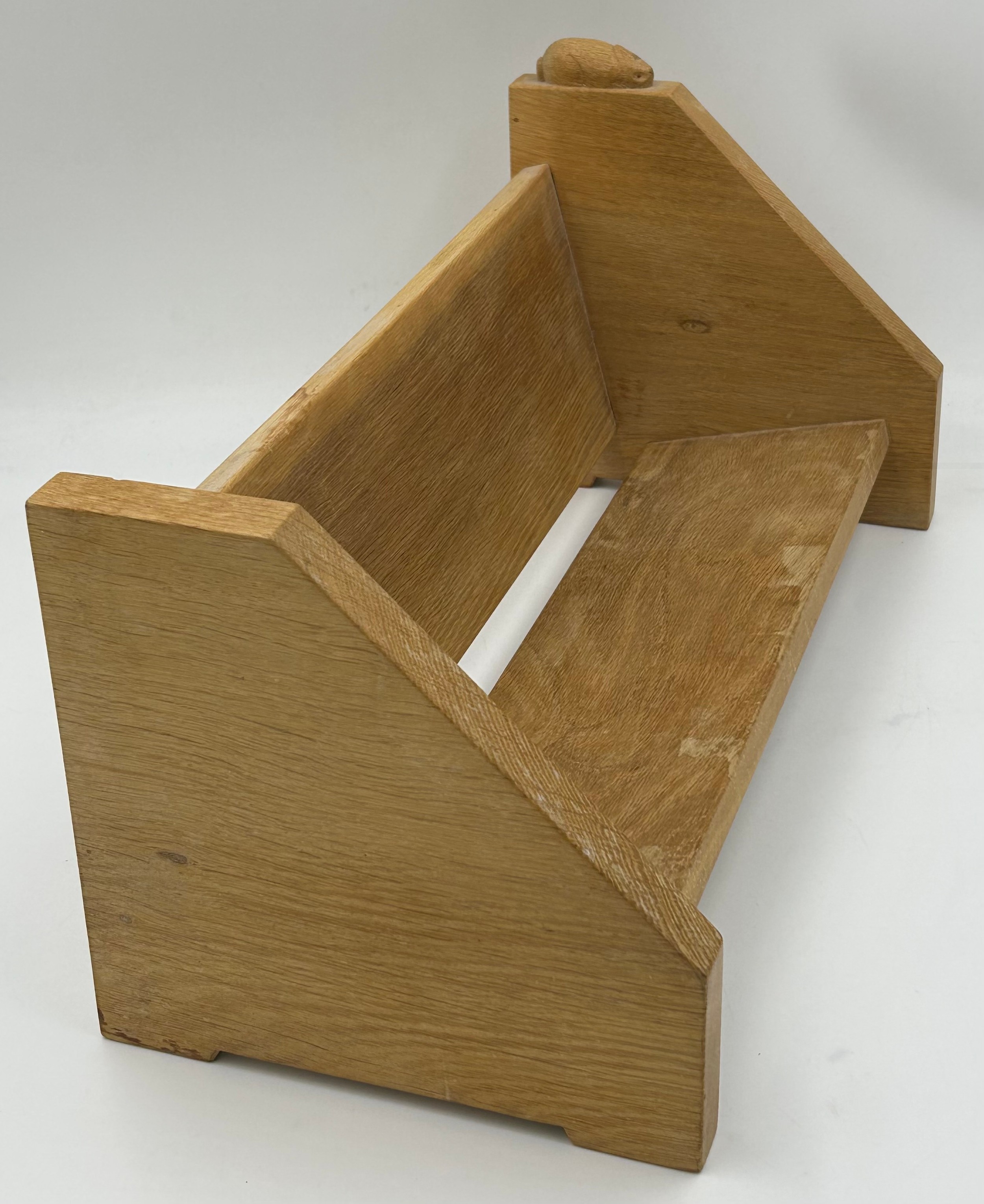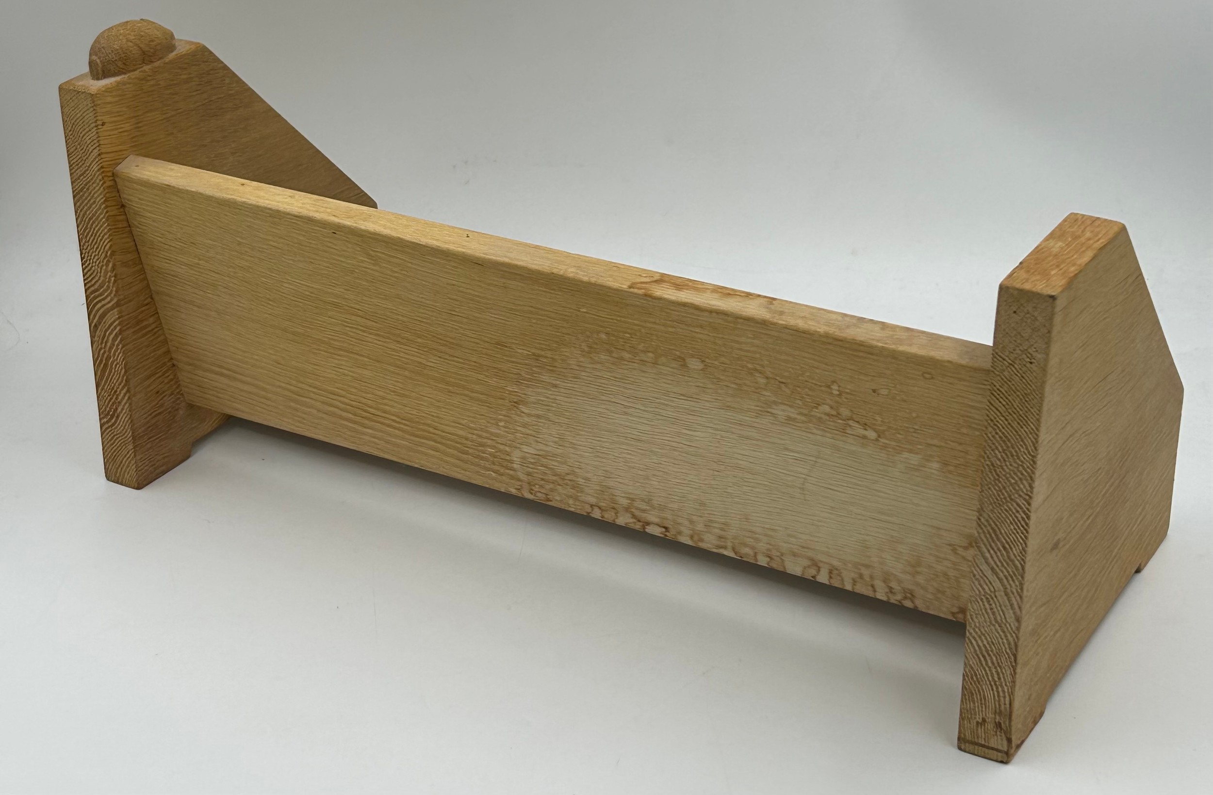 A Peter 'Rabbitman' Heap English oak Book Trough with triangular supports to each end 46cm l x 21cm w x 20cm h.