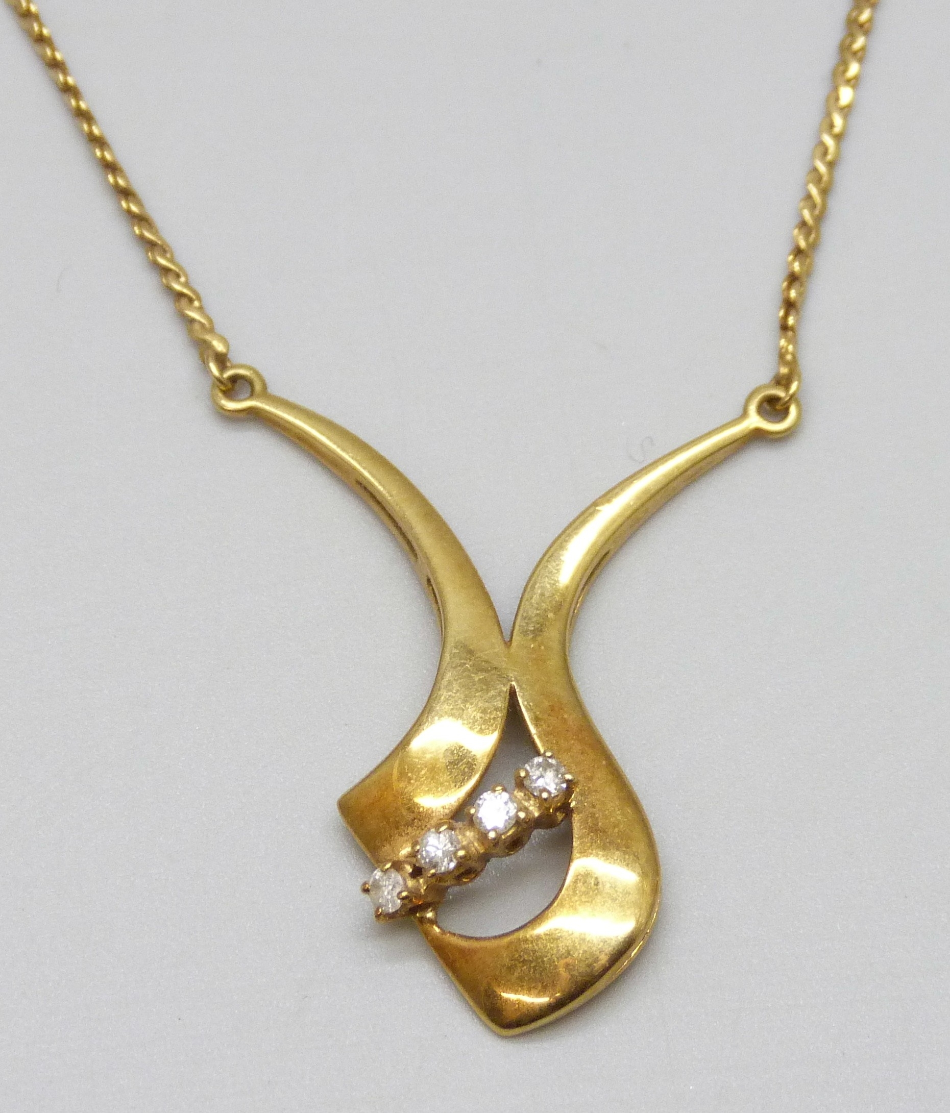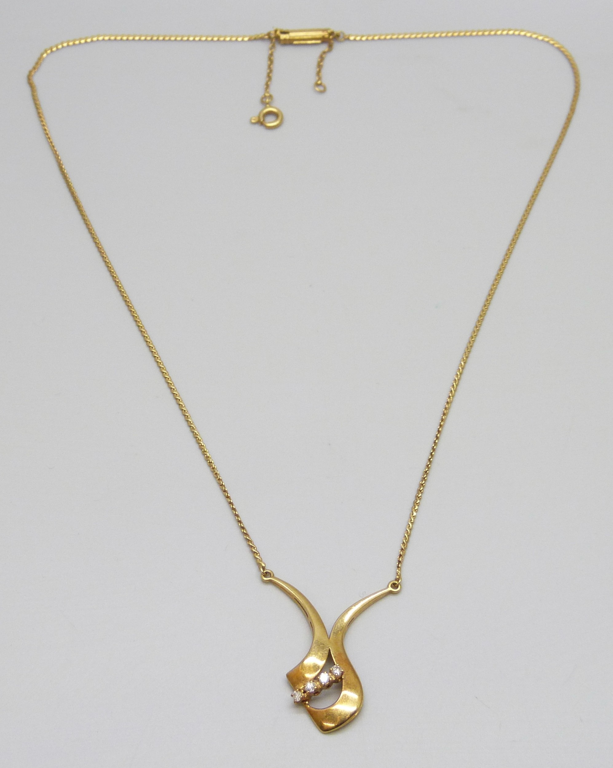 An Italian 18ct gold necklace set with four diamonds, clasp requires tightening, 7.2g, 42cm