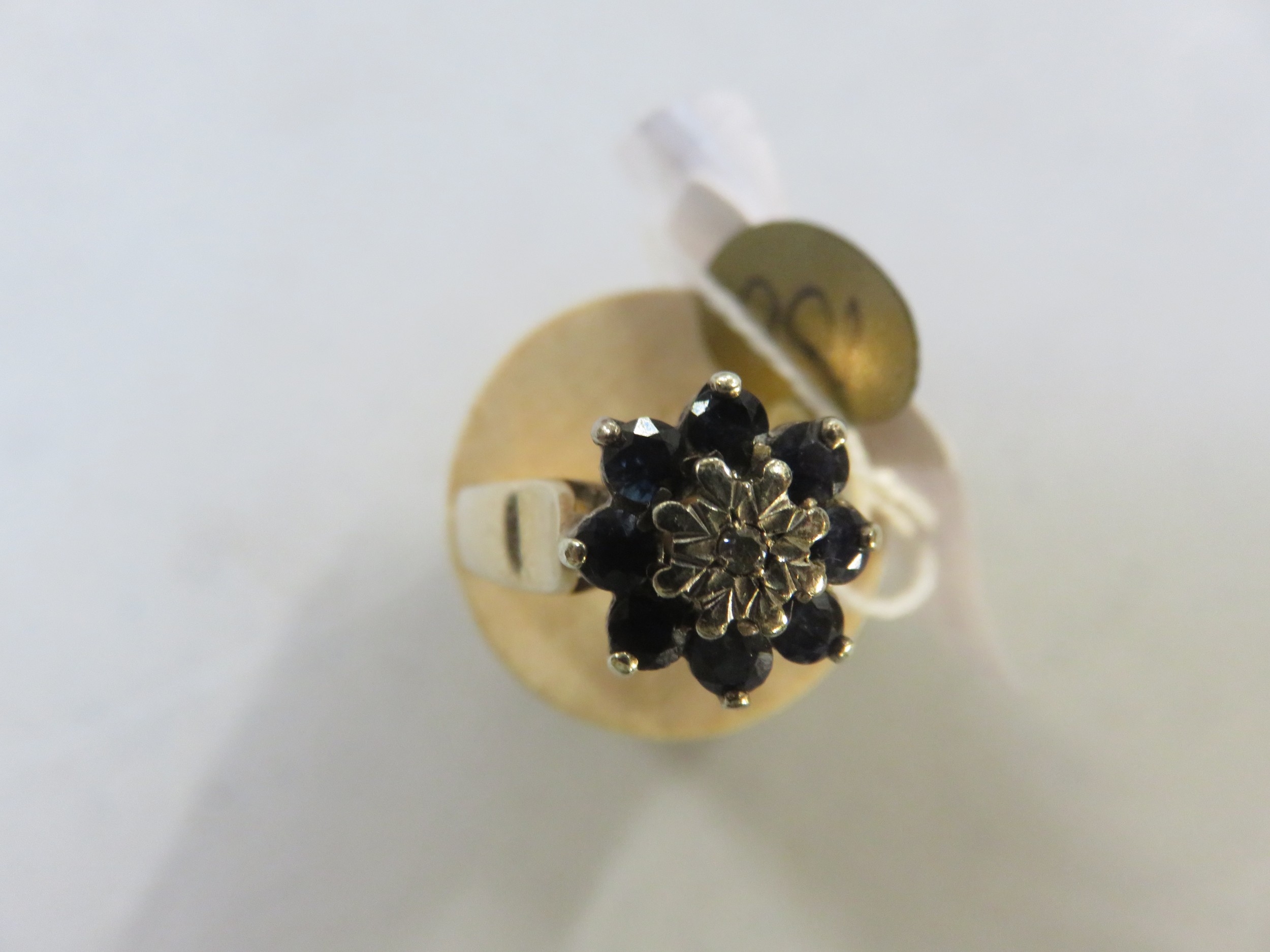 9ct Gold, Sapphire and Diamond Chip Dress Ring - size L/M - gross weight 3.5g